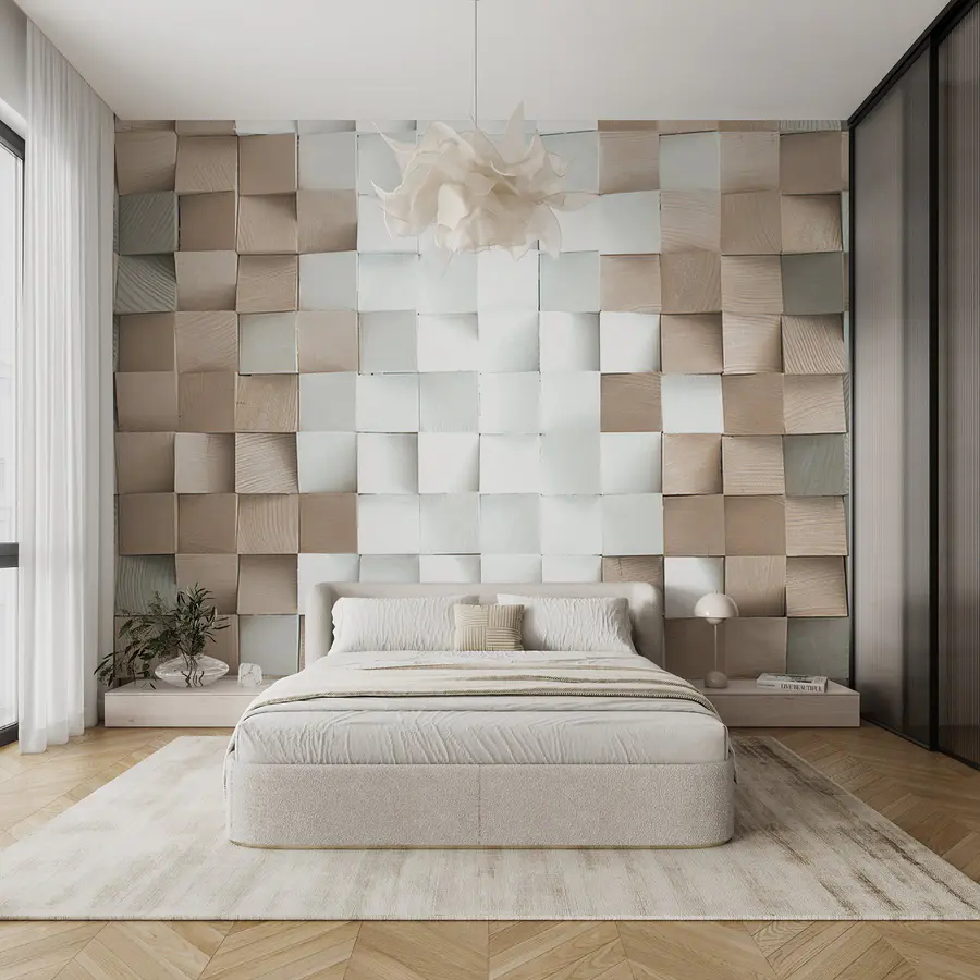 Transforme una pared lisa en un refugio acogedor con este encantador mural de pared. Imagínese entrar en una habitación fresca y ventilada, donde los suaves patrones beige y blanco juegan juntos como si estuvieran teniendo una charla amistosa. El diseño geométrico aporta una profundidad sutil que llama la atención, pero no llama la atención a gritos, un equilibrio que lo hace perfecto para cualquier espacio. Ya sea el salón donde se reúnen los amigos o un dormitorio sereno, este mural invita a la calidez y a un toque de sofisticación. Es como dar a su pared una pequeña fiesta de disfraces, ¡sin necesidad de atuendos elegantes! Deje que este mural sea el telón de fondo de risas, buenos libros o momentos tranquilos con una taza de té, creando un espacio tan animado o relajado como usted. Sencillo, acogedor y absolutamente encantador, es todo lo que una pared quiere ser.