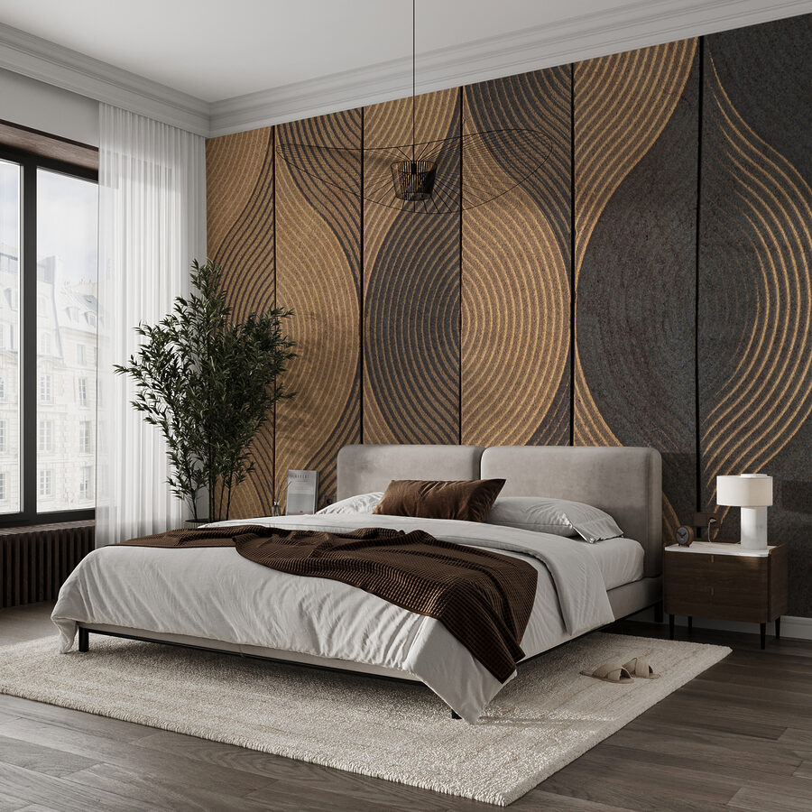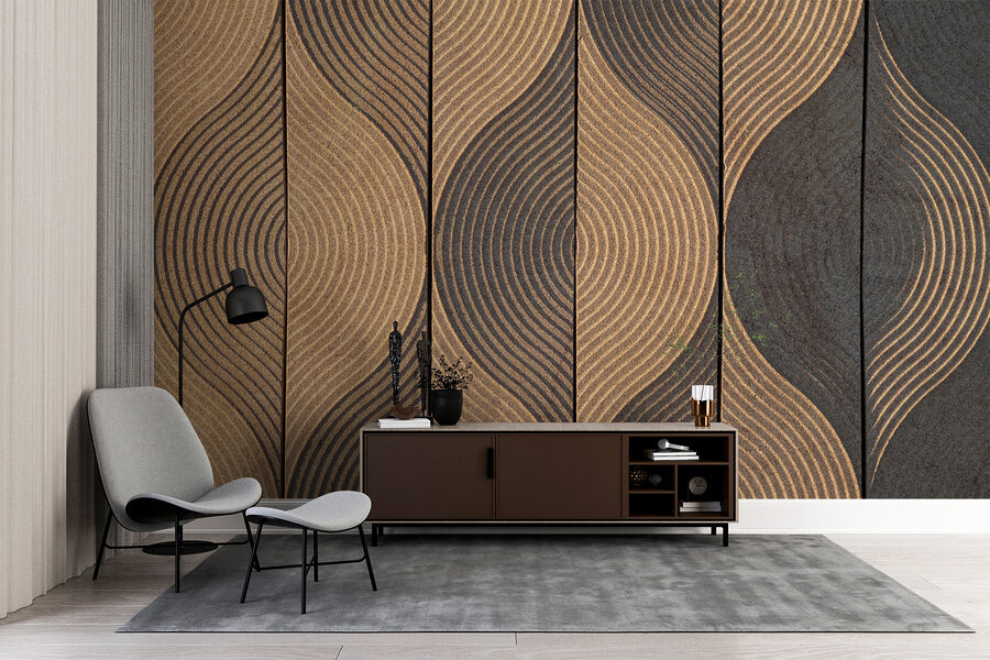 Imagínese relajarse en una habitación cuyas paredes le transmitan al instante un ambiente tranquilo y terrenal: eso es lo que consigue este mural. Literalmente, es como tener un jardín zen en la pared. Los patrones ondulados de los paneles de madera crean un ritmo precioso y natural que te atrae. Es hipnótico, ¿verdad?