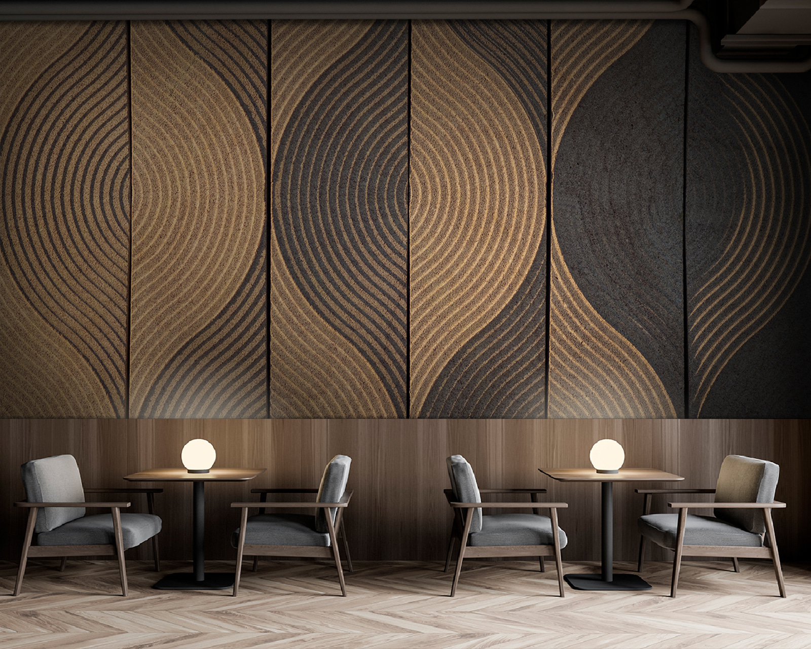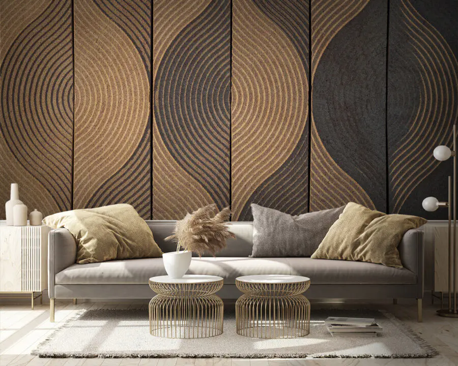 Imagínese relajarse en una habitación cuyas paredes le transmitan al instante un ambiente tranquilo y terrenal: eso es lo que consigue este mural. Literalmente, es como tener un jardín zen en la pared. Los patrones ondulados de los paneles de madera crean un ritmo precioso y natural que te atrae. Es hipnótico, ¿verdad?