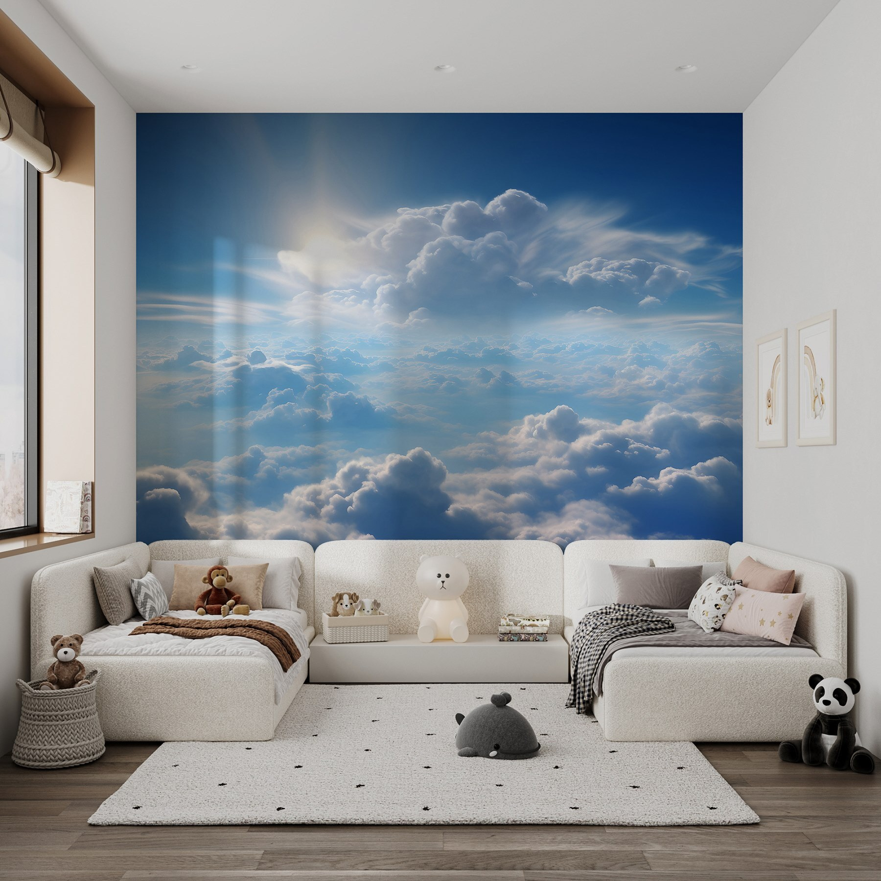Transforma cualquier espacio en una escapada de ensueño con este impresionante mural de nubes esponjosas sobre un cielo azul brillante. Imagina el sol asomándose, proyectando un suave resplandor que levanta el ánimo al instante. Es como tener un poco de ese día perfecto en la pared. Perfecto para un salón, un dormitorio o incluso un acogedor rincón de lectura, invita a soñar despierto y a relajarse. Imagínese tumbado en un cómodo sillón, con una bebida caliente en la mano, mientras el mundo exterior se desvanece. Este mural es un soplo de aire fresco que aporta serenidad sin necesidad de un billete de avión. ¿Quién no quiere sentirse flotando en las nubes?
