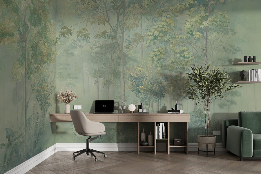Transforme cualquier espacio en un refugio relajante con este mural de un árbol en un bosque neblinoso. Imagínese despertarse en un paisaje suave y de ensueño, donde la suave niebla abraza los altos árboles, haciéndole sentir arropado en la naturaleza. Es como tu escapada personal justo en esas paredes. De repente, un espacio pequeño puede parecer vasto y sereno, invitando a soñar despierto con paseos por el bosque o acogedores rincones de lectura. Además, añade un toque único: ¿quién no querría un recordatorio diario de la paz del bosque? Es relajante y refrescante, una mezcla perfecta para cualquiera que desee un poco de tranquilidad en su vida.