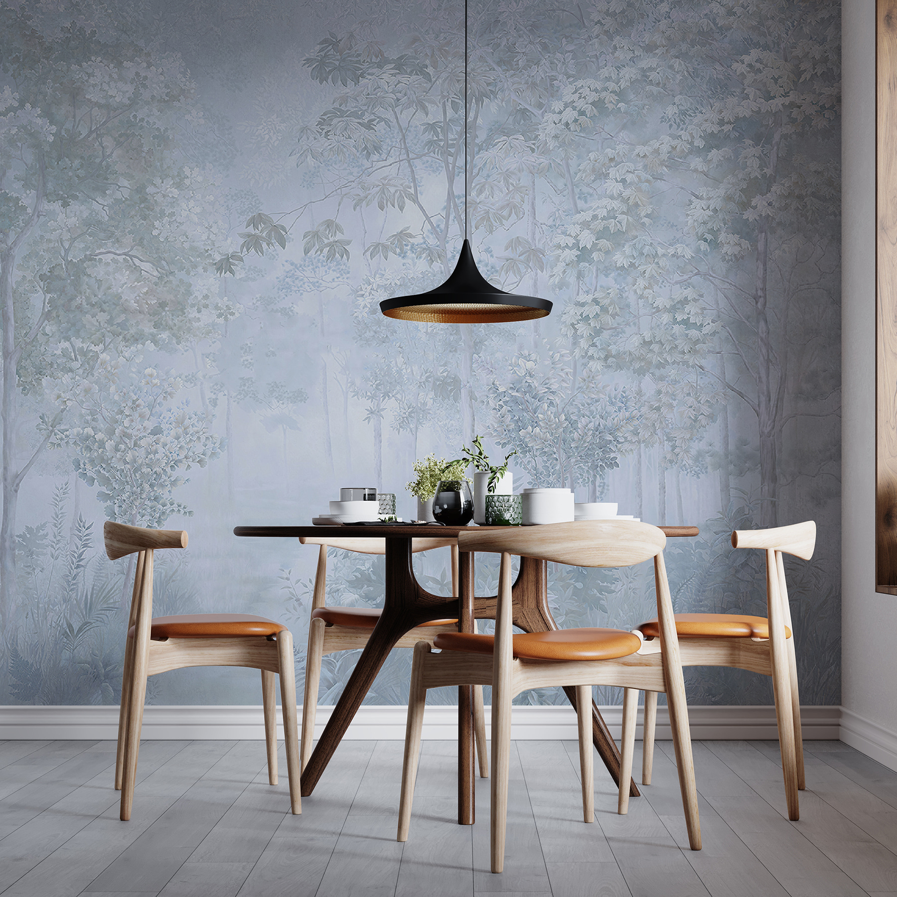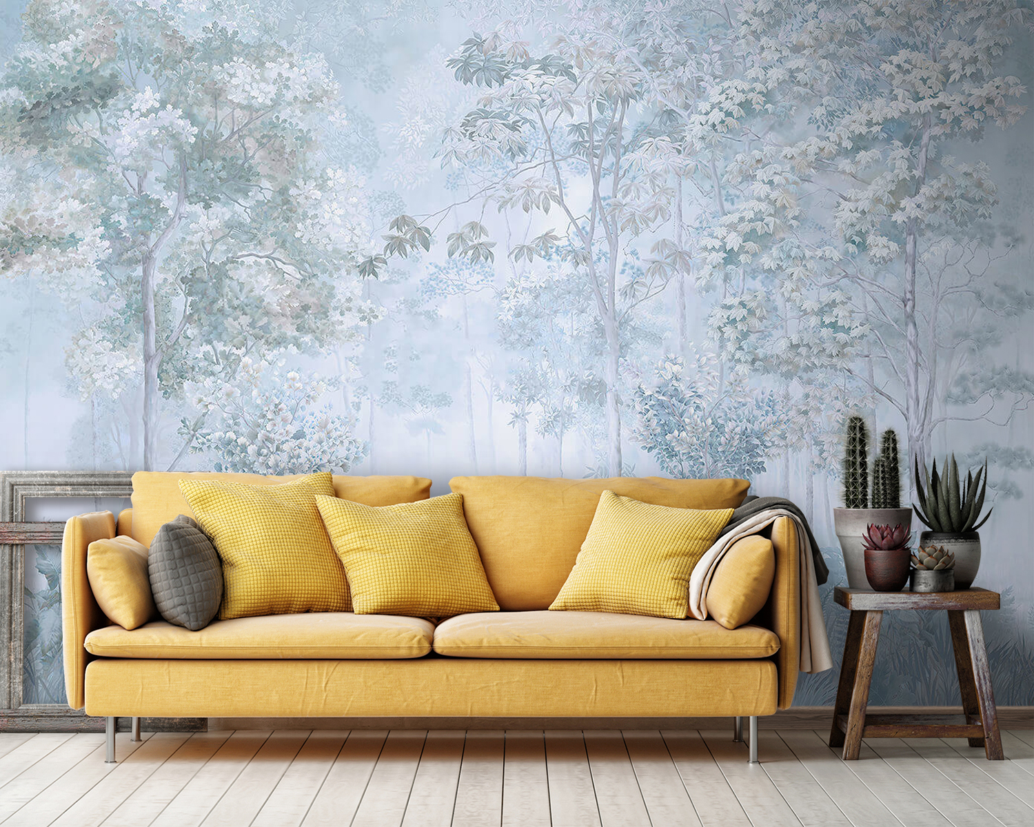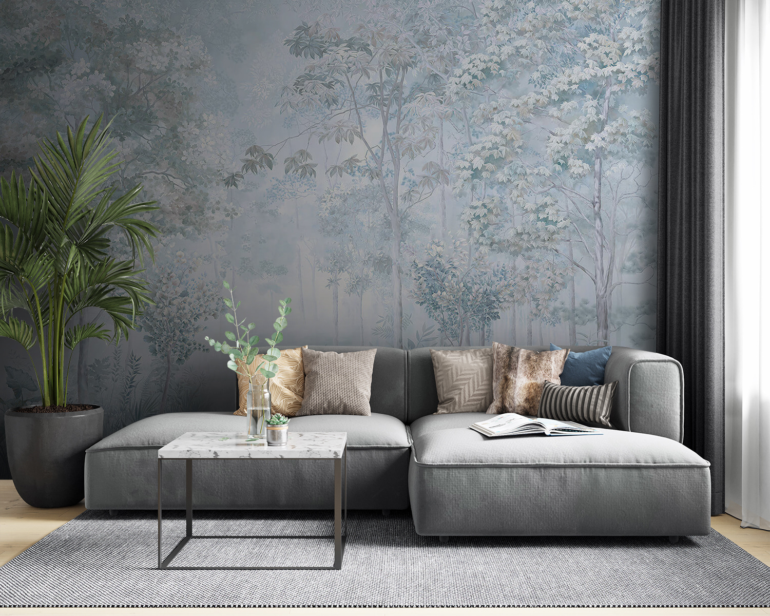 Adéntrese en una escapada de ensueño con este encantador mural de pared con árboles y plantas. Imagina el suave susurro de las hojas y los suaves susurros de un bosque con niebla en el salón de tu casa. Es como llevar un pedacito de naturaleza al interior, sin insectos ni zapatos empapados. Los colores apagados crean un ambiente relajante, perfecto para veladas acogedoras o mañanas relajantes con café. Es un recordatorio de que hay que ir más despacio y respirar, y hace que cualquier espacio resulte más tranquilo. Transforma tus paredes con este toque sereno y deja que el encanto de la naturaleza te bañe cada día.