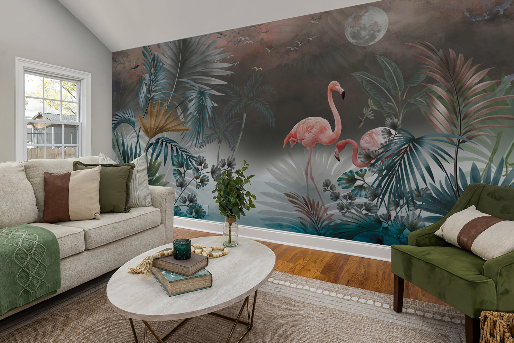 Transforme cualquier espacio en una escapada tropical con el impresionante mural de pared con flamencos en medio de un sereno paraíso. Imagínese entrar en una escapada de ensueño desde su salón o espacio de trabajo. Los tonos suaves y la exuberante vegetación hacen que parezca que sopla una suave brisa, mientras que los alegres flamencos se pasean por el lugar, añadiendo un toque de alegría. Este mural no es sólo un papel pintado; es un tema de conversación, un pequeño trozo de naturaleza que puede recordarle esas inolvidables vacaciones en la playa. Perfecto para crear una atmósfera relajante, ya sea en un rincón acogedor o en un comedor animado. Así que, adelante, ¡deje que el trópico venga a usted!