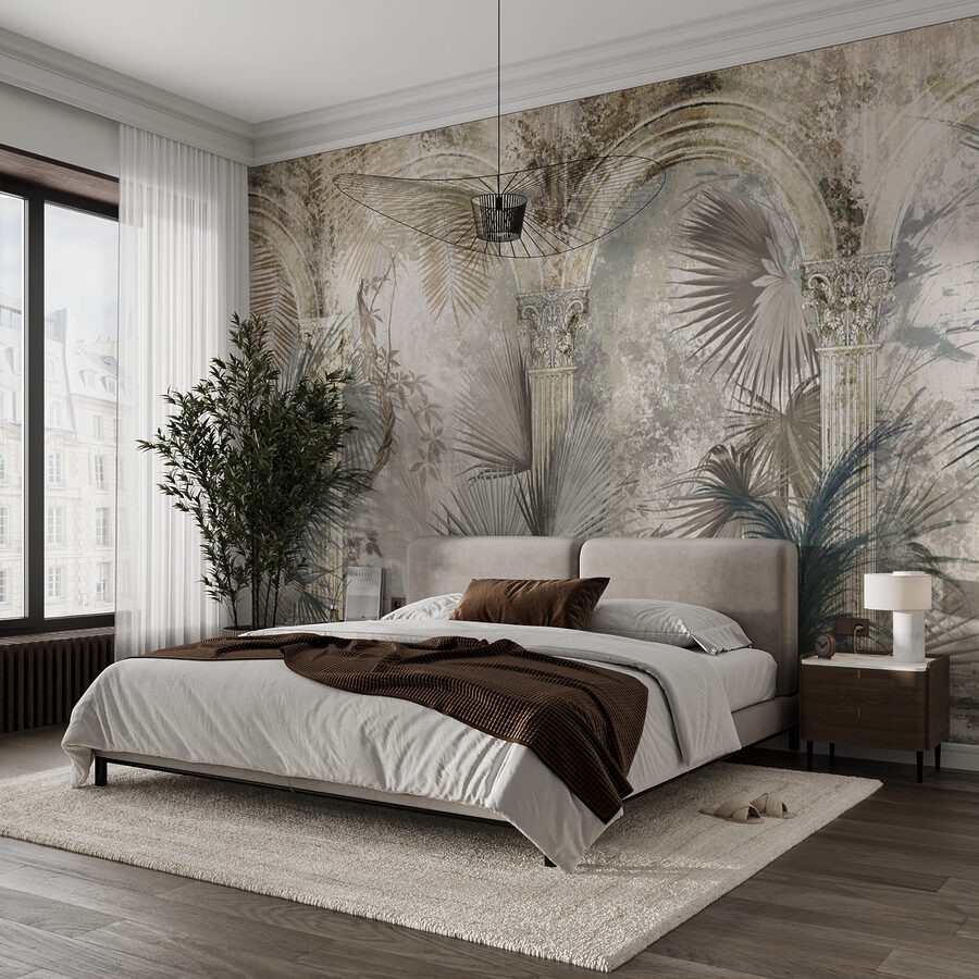 Imagínate llegar a casa y encontrarte con un trocito de paraíso con encanto antiguo. Este mural tiene un aire de arcaísmo del viejo mundo y exuberante selva que resulta encantador. Es como tener un jardín secreto en la pared. Perfecto para cualquiera a quien le guste ese aspecto de ensueño, casi mítico. Piensa en mañanas acogedoras con un café, sintiéndote como si hubieras retrocedido en el tiempo. Además, ¿las sutiles texturas y los tonos fríos de verdes y grises? Sí, son súper relajantes. Es a la vez elegante y desenfadado, ideal para crear tu propio espacio sereno.