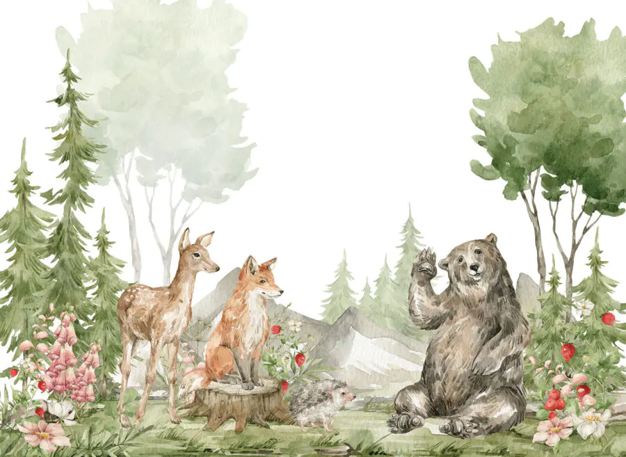 ¡Fíjese en esta encantadora escena del bosque! Perfecto para cualquier habitación infantil, este mural “Fotomurales Forest animals greeting each other warmly” es como llevar un cuento de hadas a tu casa. Imagina a tu pequeño despertándose con un oso saludando, ciervos y zorros charlando por la mañana y un simpático erizo deambulando. Es como un desfile por el bosque en tus paredes. La suave acuarela añade un toque de fantasía y calidez ideal para crear un ambiente acogedor y mágico. A tus hijos les encantará y, sinceramente, a ti también te hará sonreír cada vez que pases por delante.