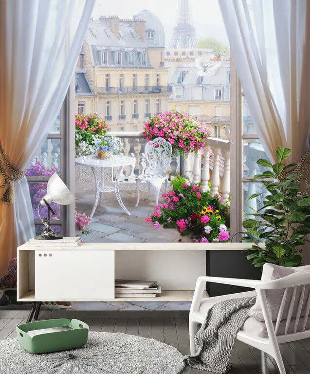 1 valoración en Fotomurales Sereno balcón parisino con flores