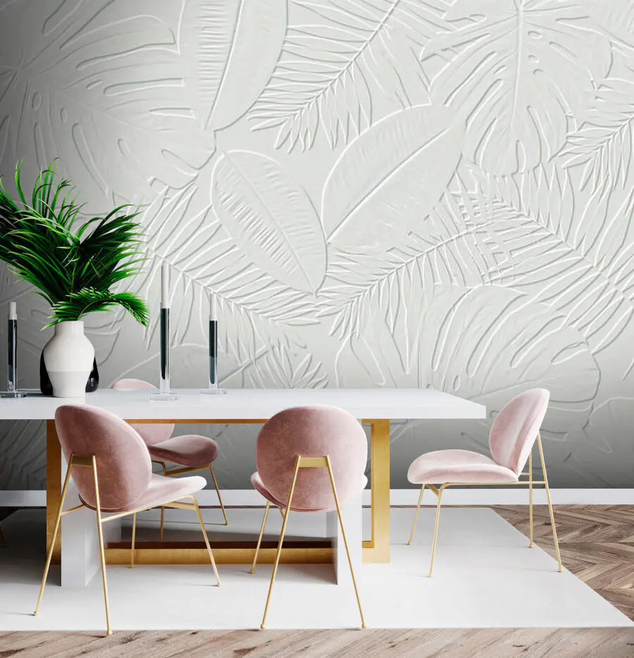 Eche un vistazo a este impresionante mural de pared con superficie blanca y diseño de hojas. Tiene esa vibración 3D que hace que las hojas casi salten de la pared. Perfecto para añadir un toque de naturaleza y un poco de sofisticación a cualquier habitación. Imagina llegar a casa después de un largo día y sentir que entras en un oasis de calma y relajación. Además, es lo suficientemente neutro como para combinar con casi cualquier estilo de decoración. Tanto si eres un fanático de las plantas como si simplemente te gusta el arte mural único, este mural podría ser el toque final perfecto para tu espacio.
