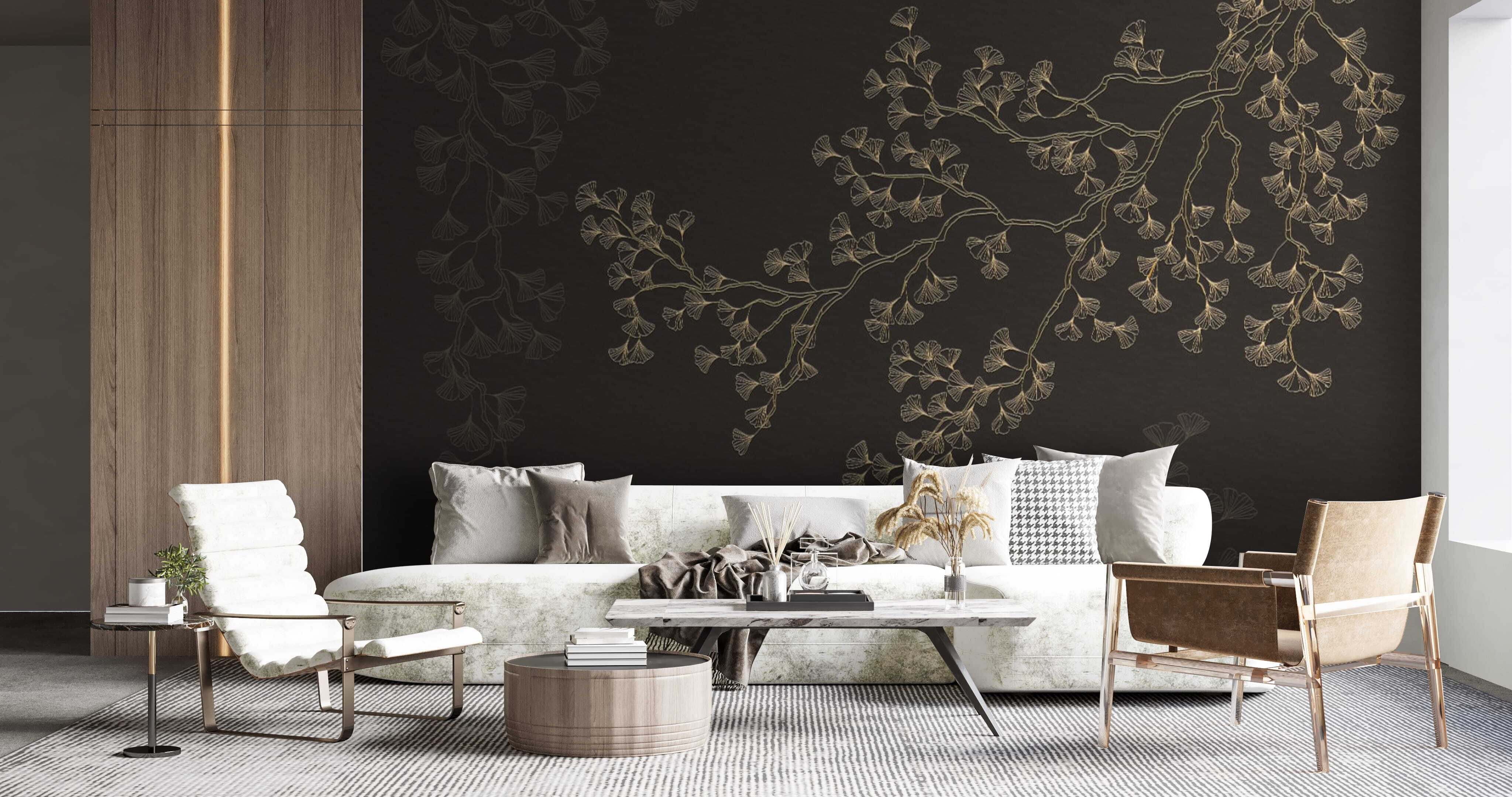Transforme sus paredes en un refugio de serenidad con este impresionante mural de elegantes hojas de ginkgo sobre un fondo oscuro. Imagínese entrar en una habitación donde la naturaleza y el estilo bailan juntos, creando un ambiente tranquilo que susurra sofisticación. Las intrincadas hojas son como pequeñas obras de arte, que invitan a mirar más profundamente, casi como si estuvieran tramando una aventura secreta. Además, impresionarán a tus amigos: ¡qué envidia de pared! Ya sea en el salón o en tu acogedor rincón de lectura, este mural aporta un toque de naturaleza al interior, haciendo que cada día sea un poco más especial. Perfecto para aquellos que aprecian una mezcla de encanto y elegancia, este diseño añade el toque justo de estilo sin exagerar.