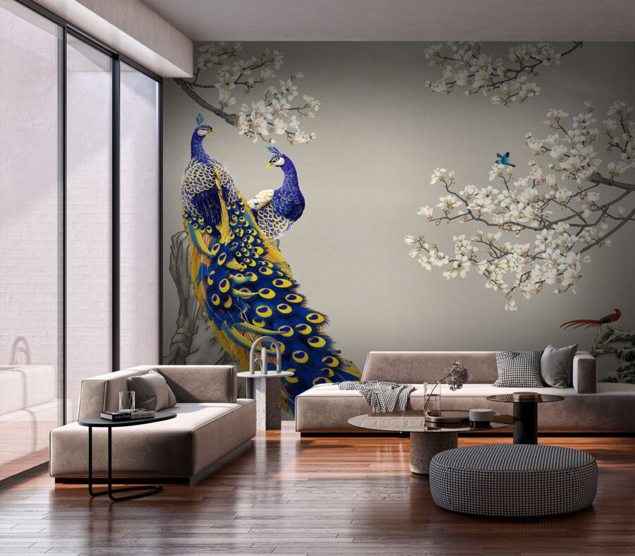 ¿Has pensado alguna vez en darle a tu espacio ese factor “wow” sin demasiadas complicaciones? Te presentamos el mural de pared “Pavos reales majestuosos”. Es como si la primavera se hubiera transformado y aterrizado en tu salón. Estos pavos reales hacen alarde de sus llamativos colores, posados entre elegantes ramas en flor: es el mejor alarde de la naturaleza. Imagínate llegar a casa después de un largo día y que te reciba esta escena: pura relajación, ¿verdad? ¿Tienes un amigo al que siempre le gusta la decoración única? Esta es una maravilla garantizada. Además, ¿tus paredes? Un tema de conversación instantáneo. Ya sea en el salón o en el dormitorio, deja que estos pavos reales se pavoneen y aporten un encanto irresistible a tu hogar.