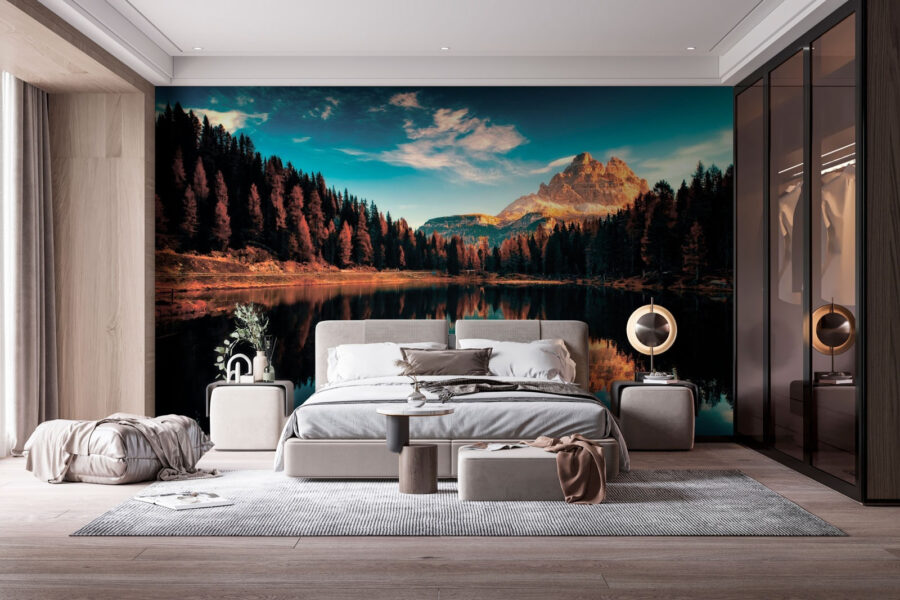 Imagina entrar en un espacio acogedor y, de repente, te llama la atención este impresionante mural de un tranquilo lago rodeado de majestuosos árboles y montañas. ¡Es como unas minivacaciones en tu pared! Los colores son tan vivos que prácticamente te invitan a sumergir los pies en el agua. Imagínate recibir a tus amigos y sentir cómo les invade una sensación de calma mientras charlan y beben, contemplando esta obra maestra. No es solo arte mural, es un creador de ambiente, una pieza destacada que convierte cualquier habitación en un refugio natural. ¿No oyes el suave chapoteo del agua y el susurro de los árboles? Este mural lleva un pedazo del aire libre al interior, perfecto para soñar despierto o planear tu próxima aventura. ¿Quién no querría eso?