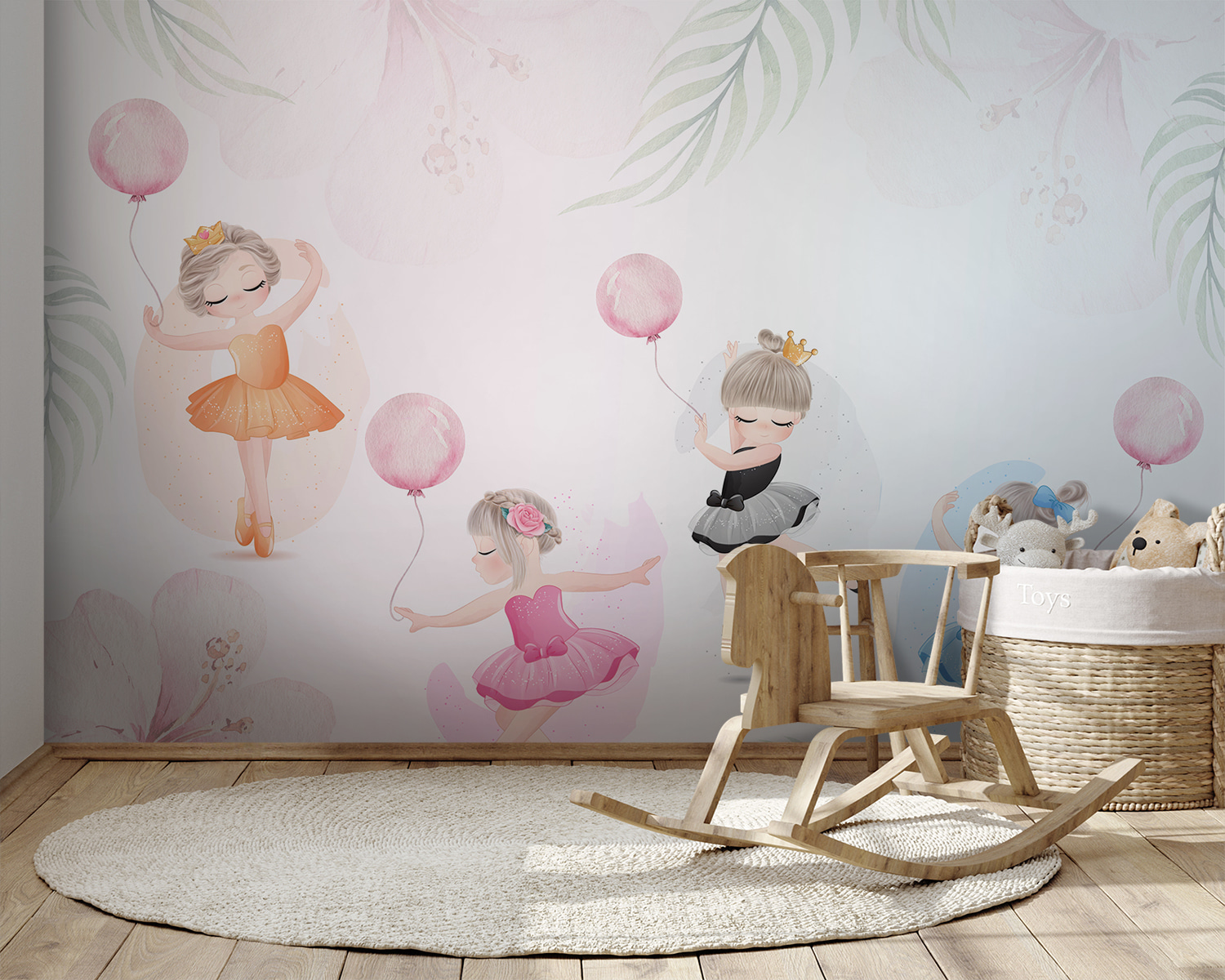 Imagina este adorable mural de pared como si entraras en un país de ensueño donde las bailarinas danzan entre suaves flores de acuarela. Perfecto para la habitación de un niño, tiene una magia suave que transformará cualquier espacio en un refugio caprichoso. Esas niñas en tutú, girando con globos, aportan tanta personalidad que casi puedes oír sus risitas y susurros de cuento de hadas. Es una forma encantadora de inspirar creatividad y alegría, con un toque de elegancia. Además, sus sutiles colores combinan a la perfección con cualquier decoración. ¿Te imaginas a tu pequeño despertándose con esto cada día? Puro encanto.