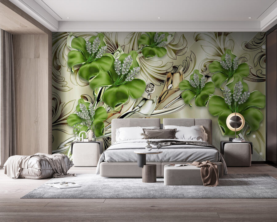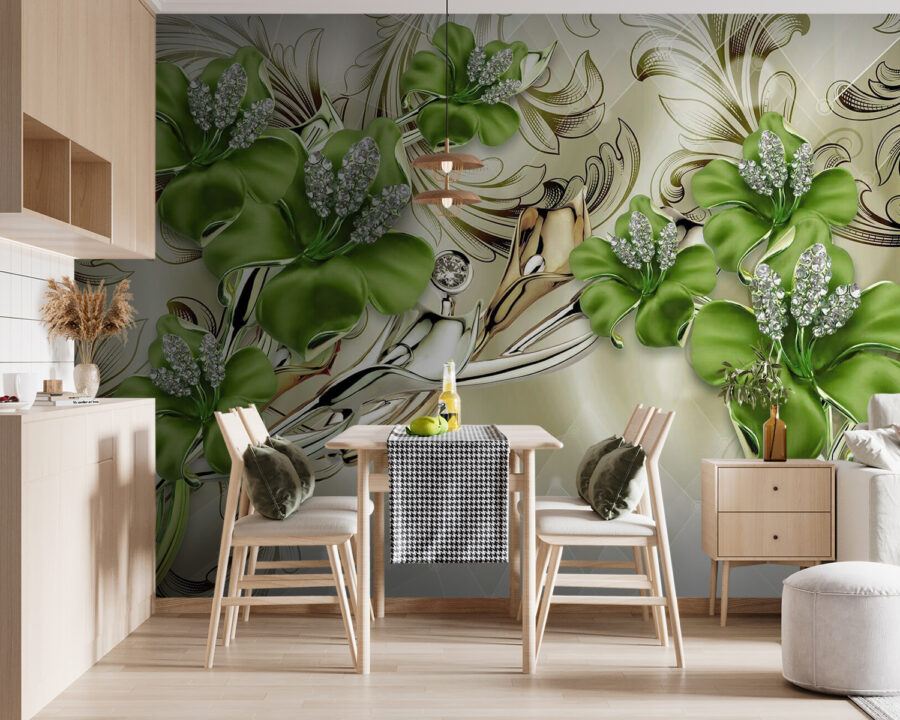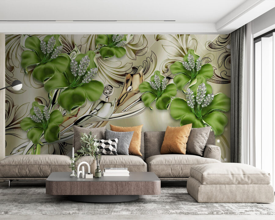 Transforme cualquier habitación con este impresionante mural de elegantes flores que prácticamente bailan en la pared. Imagine despertarse con flores que parecen recién salidas de un jardín secreto: ¿quién no sonreiría? Con vivos tonos verdes y delicados detalles, el diseño aporta un aire fresco que puede alegrar hasta el día más sombrío. Es como invitar a la naturaleza a entrar sin los molestos insectos. Perfecto para un acogedor rincón de lectura o un elegante comedor, este mural puede convertir un espacio sencillo en un trocito de paraíso botánico. Imagínate tomando un café mientras la luz del sol se refleja en los pétalos… ¿soñador, verdad? Además, podría suscitar alguna que otra conversación sobre tus “salvajes” elecciones florales. ¿Quién iba a decir que la decoración de paredes podía ser tan encantadora?
