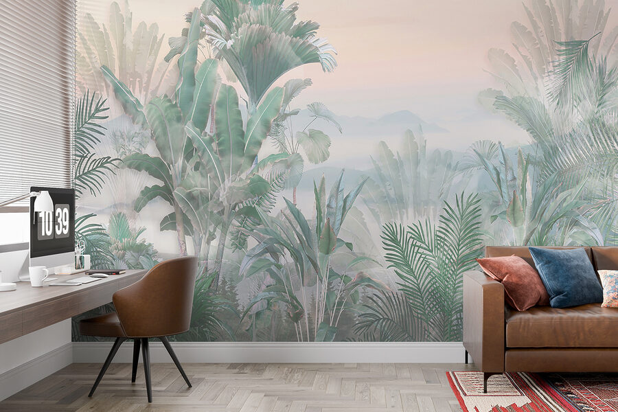 Es perfecto para añadir un toque fresco a cualquier espacio, ya sea el salón, el dormitorio o incluso un acogedor rincón de lectura. Este mural aporta la cantidad justa de naturaleza, haciendo que la habitación parezca espaciosa y amplia. Soñarás despierto con aventuras exóticas mientras te tomas el café de la mañana.