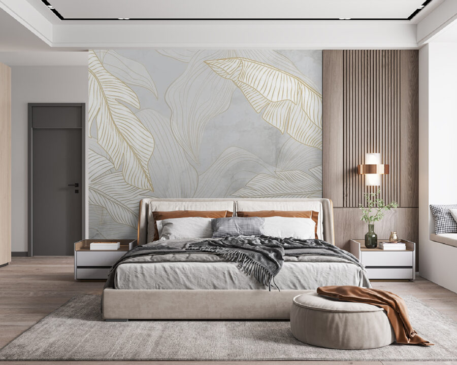 Imagine transformar su habitación en un santuario de serenidad con este mural de pared “Hojas blancas y naranjas sobre fondo gris”. Es como entrar en una galería de arte todos los días. El elegante diseño de hojas de palmera desprende un sutil ambiente tropical, mientras que el fondo gris suave mantiene la clase y la calma. Es la mezcla perfecta entre lo llamativo y lo sutil.