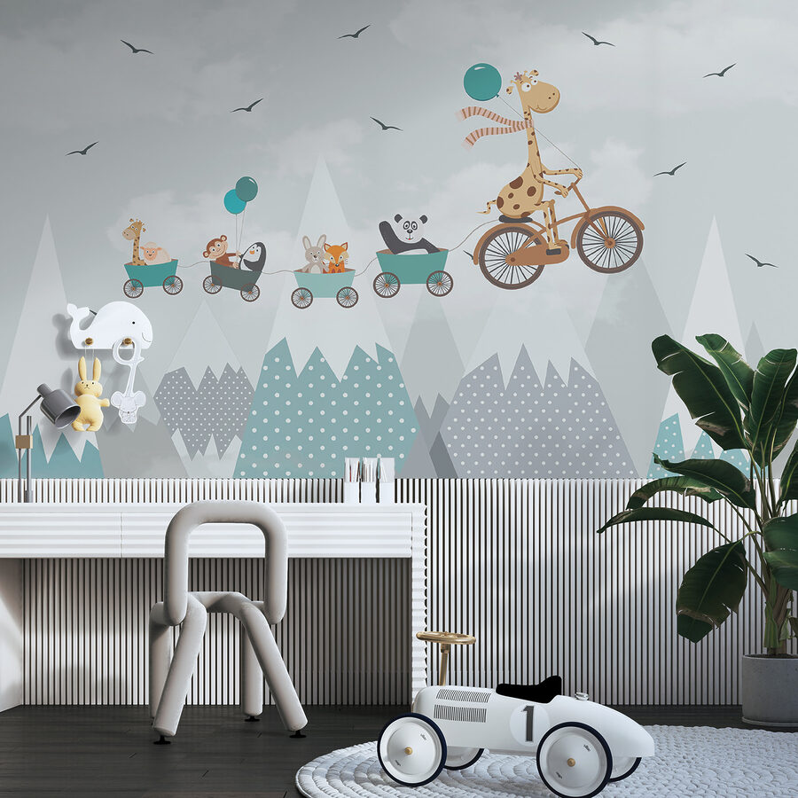 ¿Quiere añadir un poco de fantasía a la habitación de su hijo? Eche un vistazo a los “Murales de pared Jirafa montando en bicicleta”: es como un encantador sueño despierto salpicado en su pared. Este divertido mural muestra a una jirafa aventurera pedaleando por un paisaje de ensueño, remolcando un desfile de adorables animales. Los suaves tonos pastel y las juguetonas escenas transportarán a su pequeño a un mundo de imaginación, por lo que es perfecto para cuartos infantiles o salas de juegos. Imagina que los cuentos para dormir se convierten en increíbles viajes con este telón de fondo. Además, ¿esos encantadores lunares y montañas? Son una monada. Este mural no es sólo decoración, es un billete a la aventura cada día.