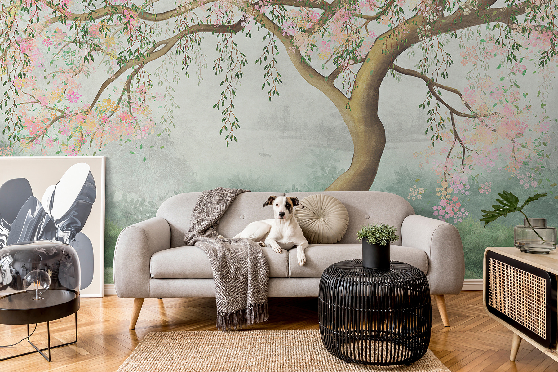 ¿Y esas flores? Casi parece que pudieran salir flotando de la pared. Y el árbol, con sus elegantes ramas, parece invitarte a sentarte a su sombra para disfrutar de un momento de tranquilidad. Haz una pausa, asimílalo todo y siente cómo la tranquilidad se filtra en tu día a día. Imagínese este mural proyectando un sereno resplandor durante sus cuentos antes de dormir o aportando un suave telón de fondo a su ajetreo cotidiano.