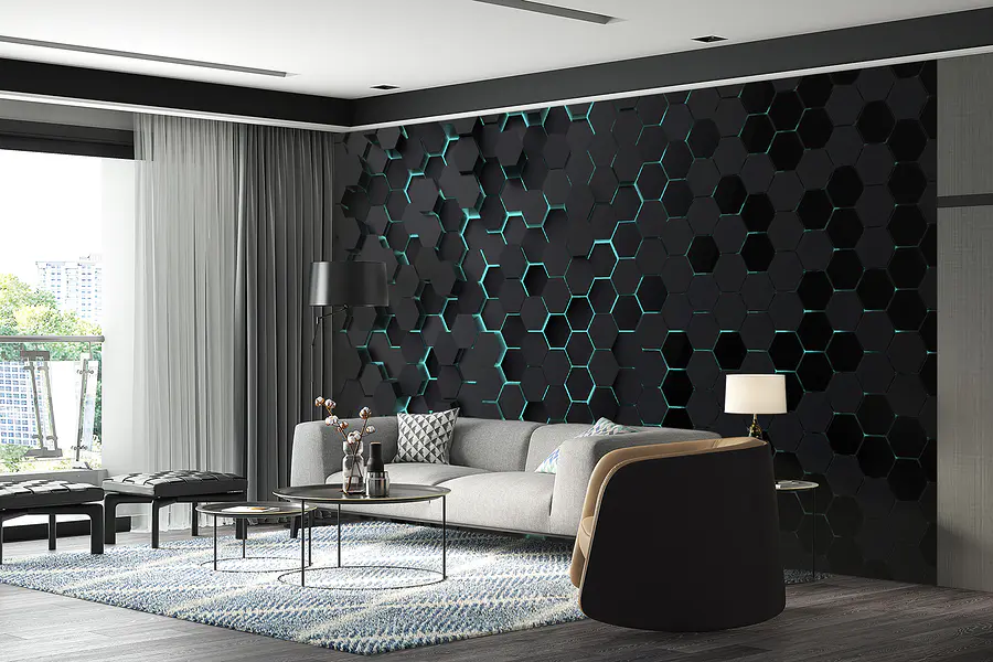 Eche un vistazo a “Black and Blue Hexagons”, el mural de pared perfecto para dar a su espacio un aire moderno y vanguardista. Este patrón geométrico parece que salta a la vista, ¡casi como si fuera en 3D! Imagínatelo en el salón o en la oficina; es como si la pared estuviera llena de movimiento y profundidad. Además, ¿esos detalles azules? Añaden la cantidad justa de color sin exagerar. Te hace sentir como si estuvieras mirando una colmena futurista. Dale a tus paredes un toque elegante y un poco aventurero con este atrevido diseño.