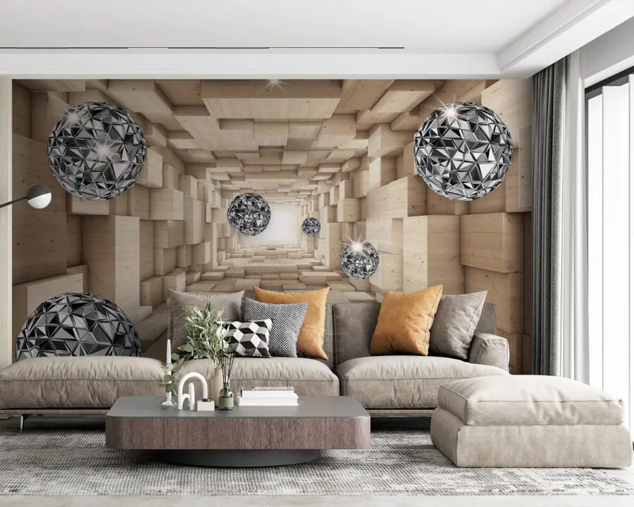 Adéntrese en un mundo completamente nuevo con el mural Esfera plateada y negra. Imagina caminar por un espacio que parece extenderse infinitamente. Esas llamativas esferas parecen flotar justo delante de ti, creando una caprichosa ilusión que hará que tus invitados se queden boquiabiertos. El suave fondo de madera añade un toque de calidez, equilibrando el fresco ambiente del mural. Imagínatelo en una acogedora sala de estar o en un moderno espacio de trabajo, transformando el ambiente al instante. No es sólo decoración, es una experiencia. Deje que sus paredes cuenten una historia y atraiga a todas las mentes curiosas.