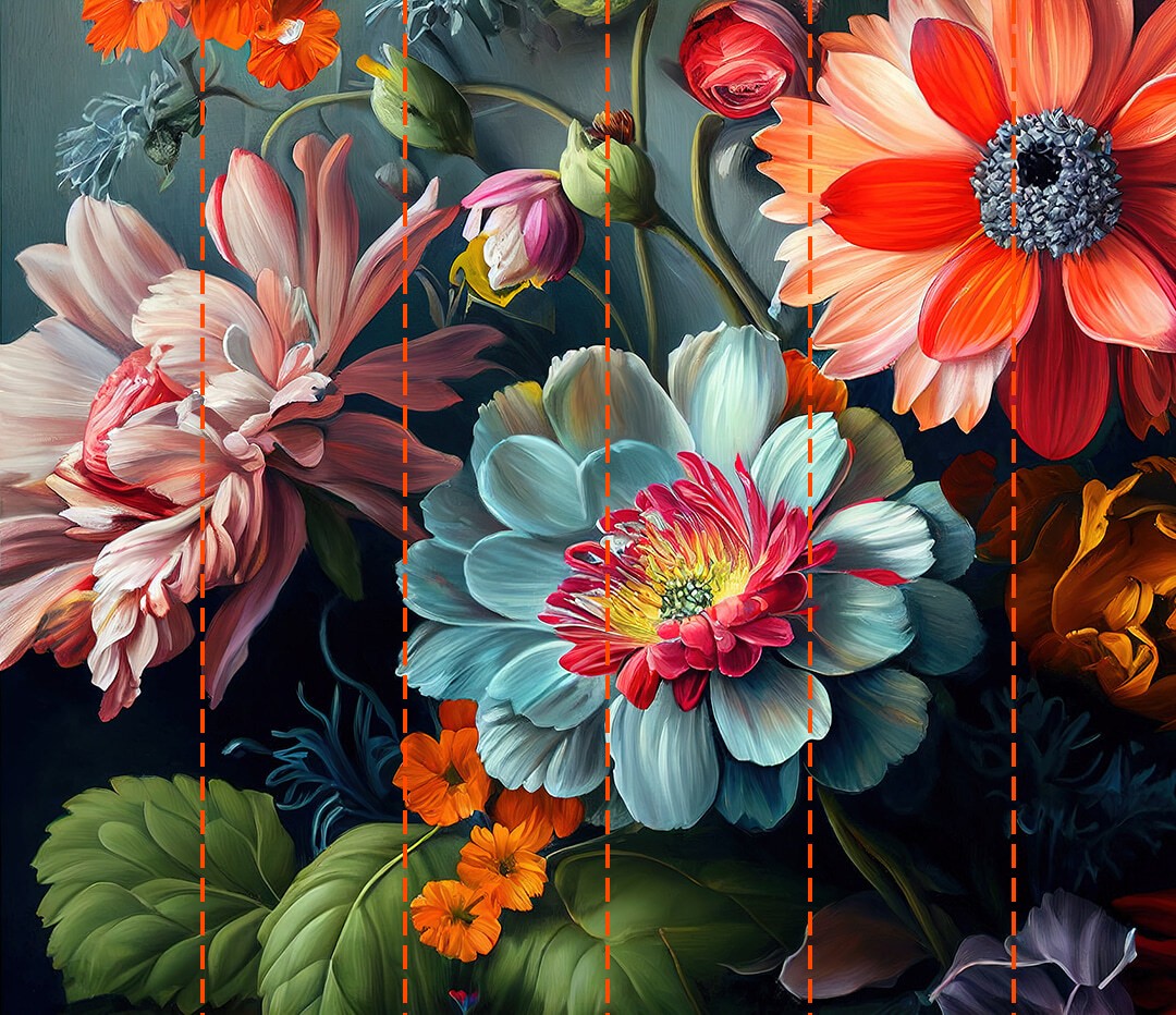 Tu papel pintado se preparará según las dimensiones que nos hayas facilitado durante el proceso de pedido. El lienzo se dividirá en cómodas secciones de hasta 50 cm de ancho cada una.