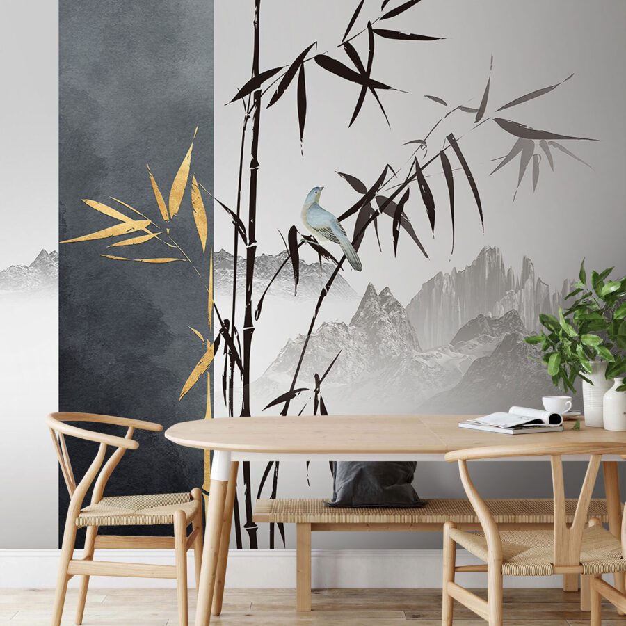 ¿Alguna vez ha soñado con tener un trozo de naturaleza serena en el salón de su casa? Saluda a “Pájaro sentado en una rama”, el mural que es como un soplo de aire fresco para tus paredes. Imagínese un delicado pájaro posado en una rama, con un impresionante telón de fondo de montañas neblinosas: tiene algo casi mágico. Los tonos suaves y las líneas suaves lo convierten en un refugio de paz.