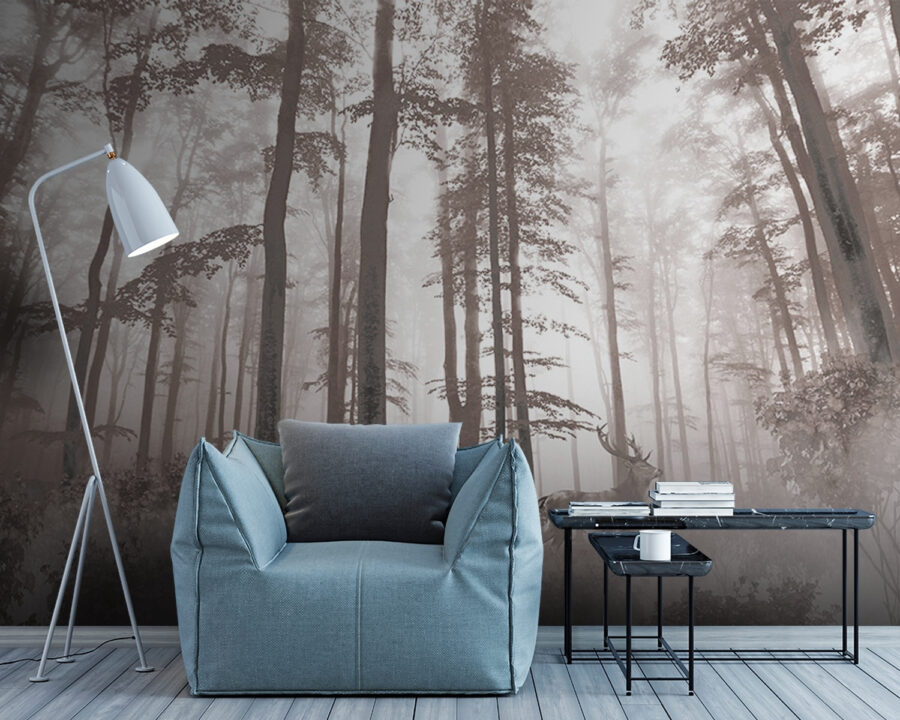 Transforma tu espacio con este impresionante mural de ciervos que deambulan con elegancia por un bosque de ensueño. Imagínate transportado a un bosque sereno, donde la niebla se cierne suavemente entre los árboles. Es como un suave susurro de la naturaleza que invita a la paz y la tranquilidad directamente a tu hogar. Perfecto para una acogedora sala de estar o un relajante dormitorio, este mural lleva el aire libre al interior, ¡sin necesidad de botas embarradas! Además, seguro que dará mucho que hablar. ¿A quién no le gustaría compartir un poco de la magia del bosque con sus amigos? Trae la belleza de la naturaleza y deja que tus paredes cuenten una hermosa historia.