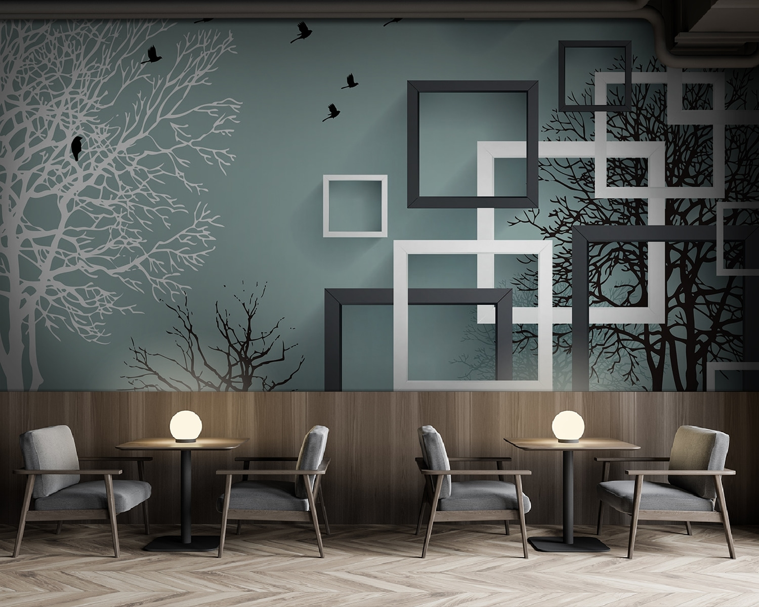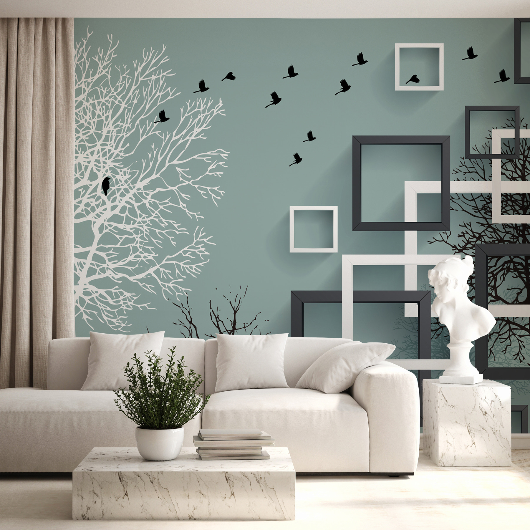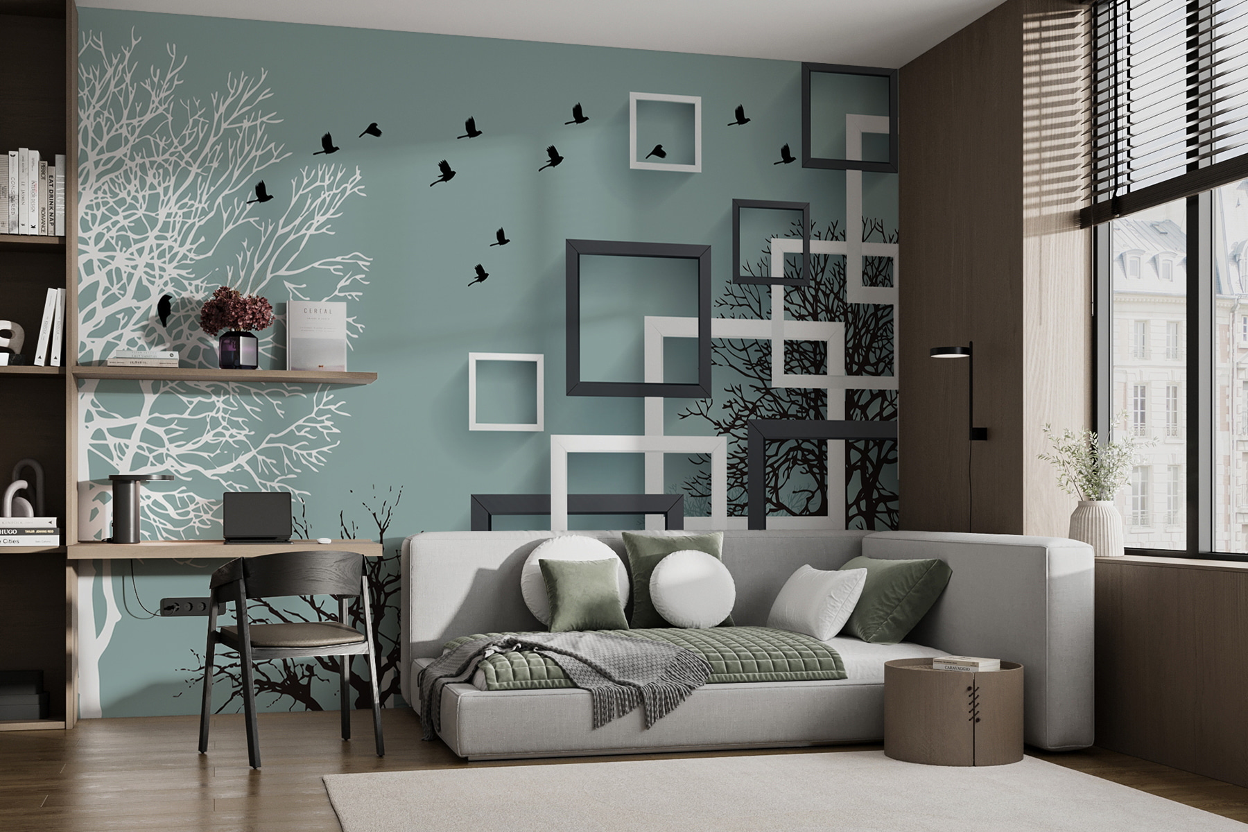 Imagínese entrar en una habitación y sentir al instante un soplo de aire fresco. Esa es la sensación que transmite este mural de pared. Con sus elegantes árboles y sus juguetones pájaros, transforma cualquier espacio en un trocito de naturaleza. Es como si el aire libre se hubiera invitado a entrar en tu casa. ¿Y esos marcos geométricos? Añaden un toque extravagante, dándole un toque artístico sin esforzarse demasiado.
