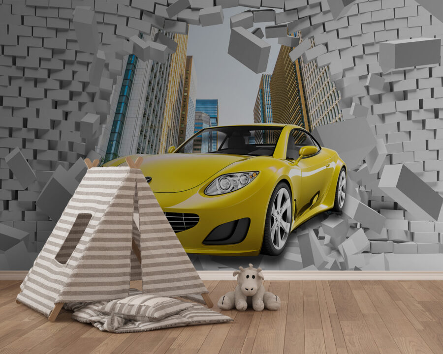 ¿Has pensado alguna vez en darle un toque de emoción a tu habitación? Imagínese un coche deportivo atravesando una pared de ladrillo justo en su pared. Este mural es perfecto si tiene un pequeño entusiasta de los coches en casa, o simplemente alguien a quien le guste un poco el dramatismo. Forma parte de las colecciones “Automóvil” y “Pared de ladrillos”, pero también es fantástico para habitaciones infantiles. La energía de los ladrillos que chocan y el elegante coche amarillo añaden un toque de color y acción. Es como añadir una dosis de adrenalina a tu decoración. En serio, ¿te imaginas la cara que pondrán tus invitados? Todo un espectáculo.