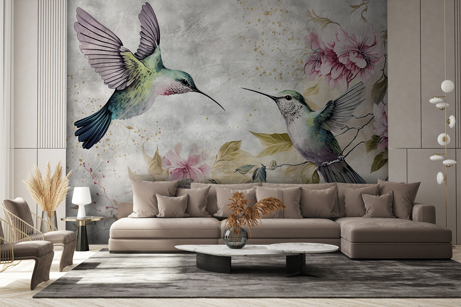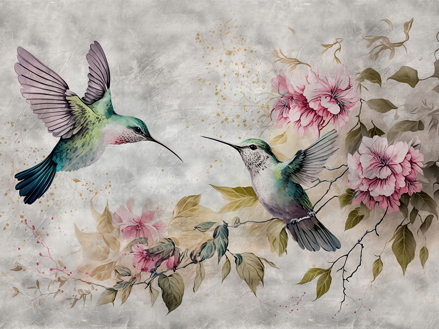 2 valoraciones en Fotomurales Los colibríes danzan entre delicadas flores