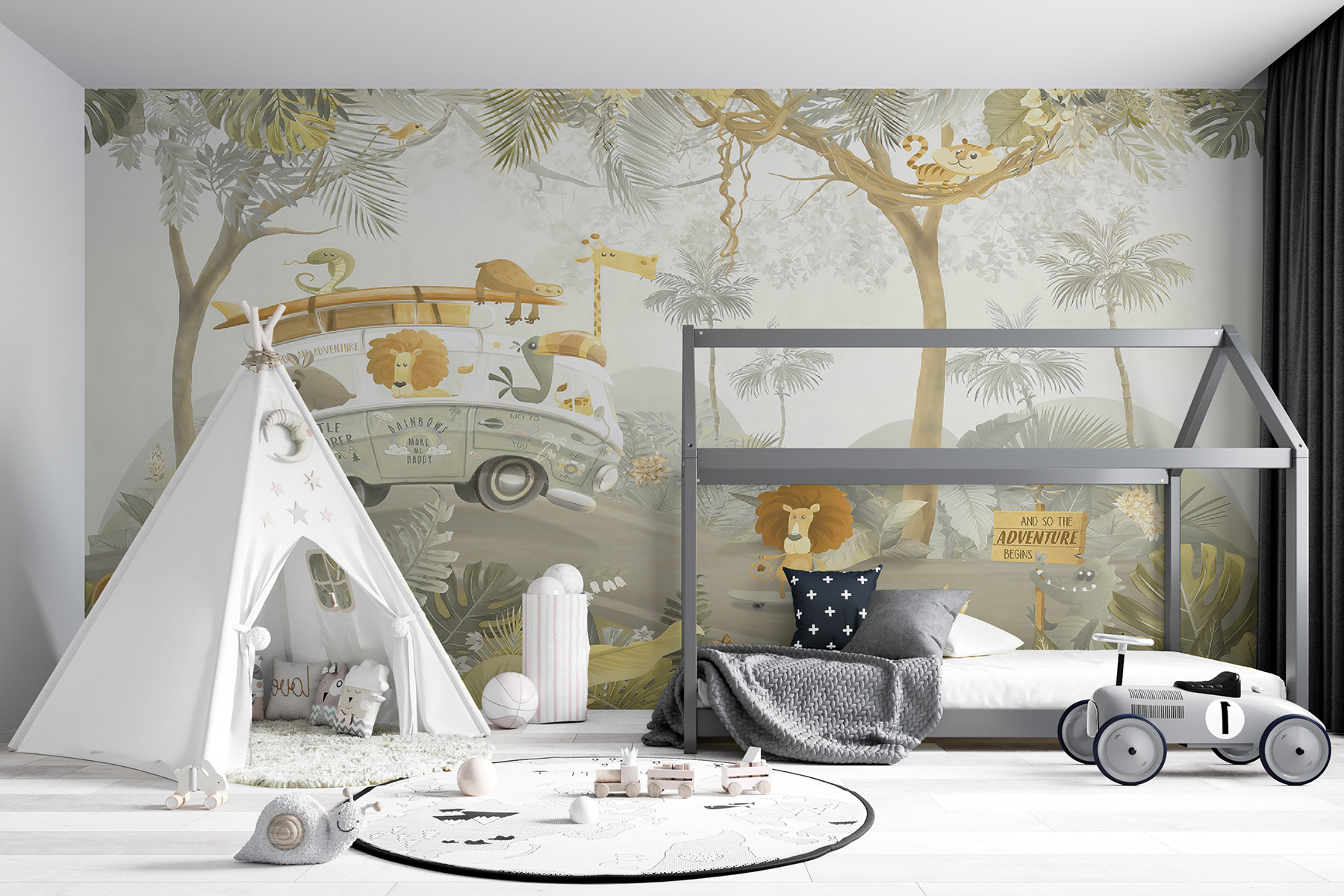 Perfecto para los pequeños exploradores, este mural añade un toque de imaginación a cualquier espacio. Tiene ese aire de libro de cuentos que provoca sonrisas al instante y despierta la creatividad. Tal vez un cuento antes de dormir incluya ahora a un león que patina al atardecer, o tal vez una mágica excursión por la selva cada mañana. Asequible y encantador, convierte las paredes en paraísos narrativos, un telón de fondo perfecto para los sueños de la infancia y los momentos de juego. Cada mirada a este mural es un recordatorio de que la aventura está a la vuelta de la esquina.