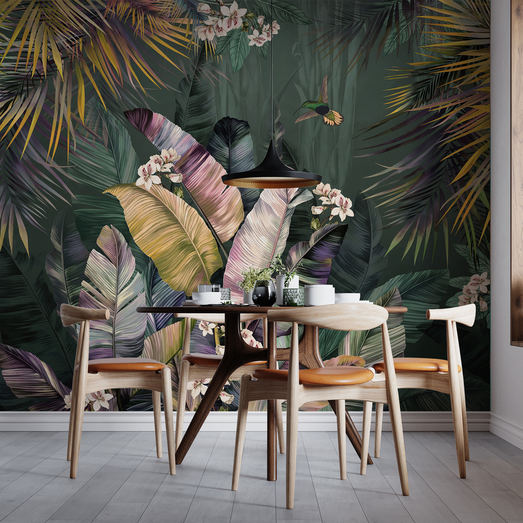 Imagínese llegar a casa a su propio paraíso tropical con este impresionante mural “Colibrí volando en el aire” en su pared. Los verdes vibrantes, el exuberante follaje y los toques de delicadas flores crean un ambiente de selva exuberante que te hará sentir como si hubieras entrado en una serena selva tropical. ¿Y ese encantador colibrí revoloteando? Añade un toque de magia, como si la naturaleza bailara alegremente en tu salón.