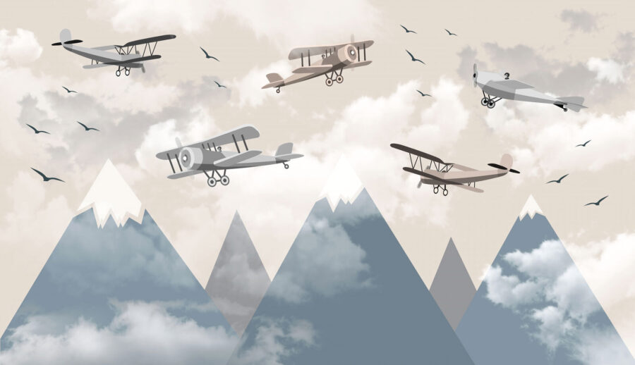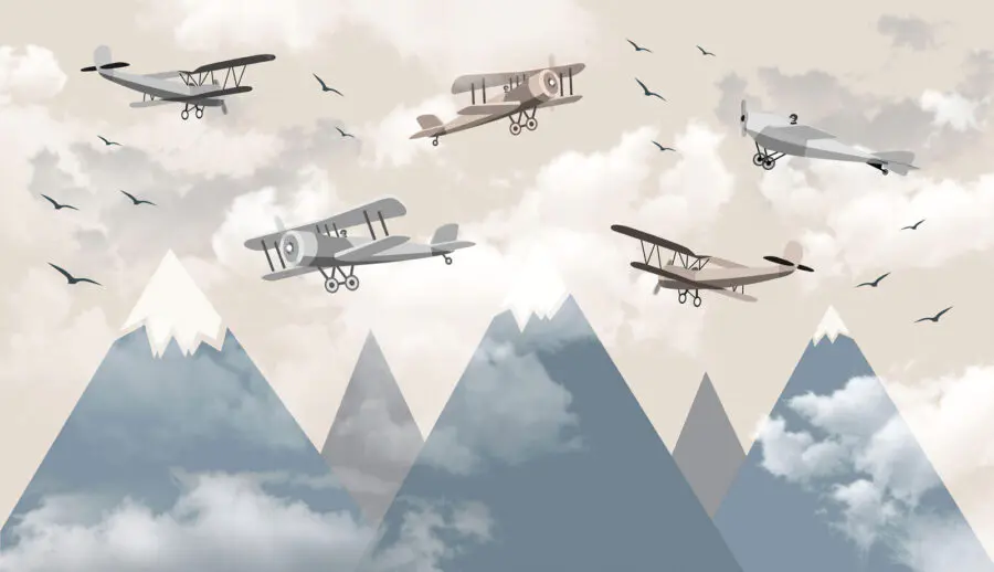 Imagínese que entra en su casa y se siente como si acabara de entrar en la fantasía de un aviador de ensueño. El mural “Biplanos volando sobre picos nevados” te transporta a un lugar donde el cielo es el límite, literalmente. Estos encantadores biplanos de época, flotando sin esfuerzo sobre majestuosas montañas nevadas, añaden un toque caprichoso a cualquier habitación. Perfectos para la habitación de los niños o para un acogedor rincón de lectura, despertarán la imaginación y puede que incluso alguna que otra ensoñación aventurera. ¿Tienes un futuro piloto en casa o simplemente te gusta la decoración única? Este mural es exactamente lo que necesitas. Siéntate, relájate y deja que tus paredes cuenten una historia.
