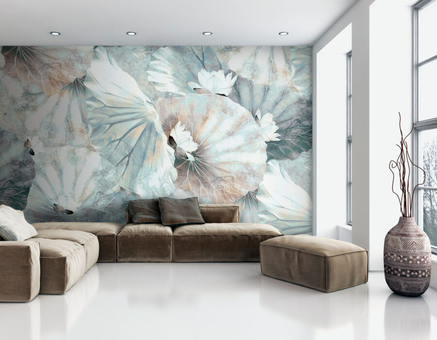 Transforme su espacio en una escapada serena con este elegante mural de flores y hojas de loto. Imagínese entrar en un oasis de calma cada vez que entre en la habitación. Los colores suaves y apagados crean un ambiente ligero y aireado, perfecto tanto para rincones acogedores como para reuniones animadas. Es casi como si el susurro de la naturaleza te invitara a relajarte, respirar y soñar un poco. Imagina añadir este mural a la oficina de tu casa para dar un toque de inspiración o en un rincón de lectura para elevar la hora de los cuentos. Este diseño no sólo decora; convierte las paredes en un lienzo de tranquilidad, recordándote que la belleza puede encontrarse en cada pequeño detalle. ¿Quién iba a decir que una pared podía tener tanto encanto?