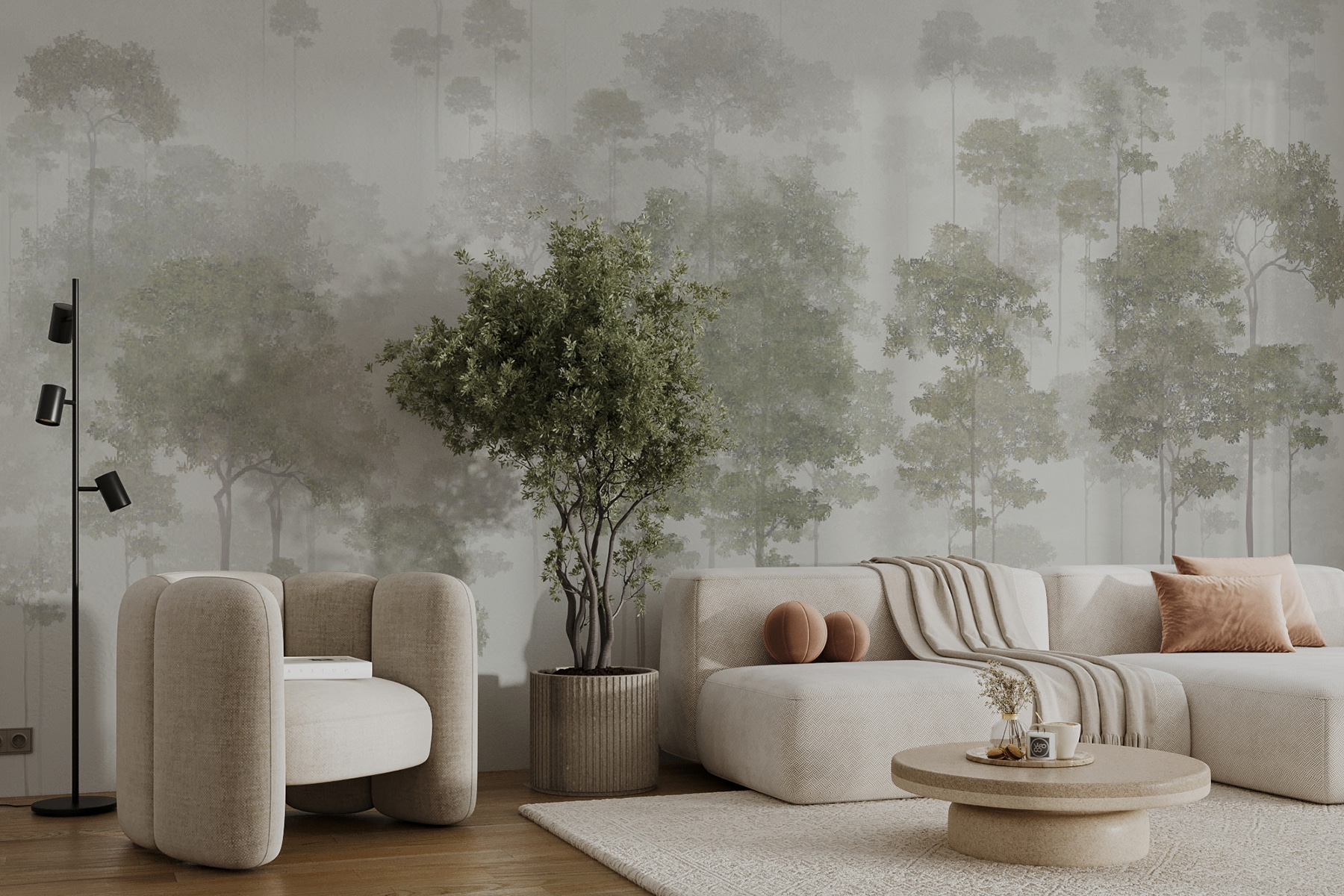 Imagine adentrarse en un bosque sereno cada vez que entra en la habitación. Este mural de árboles en un bosque brumoso hace exactamente eso. El telón de fondo brumoso hace que parezca que la naturaleza está envuelta suavemente en una manta acogedora, invitando a una sensación de calma y paz. ¿Te imaginas acurrucarte con un libro bajo una luz tenue? ¿O tal vez fingiendo que tomas un café mientras observas cómo las hojas bailan al compás de la brisa desde el salón de tu casa? Es el toque perfecto para un espacio moderno o incluso un rincón acogedor. Lleve el aire libre al interior y deje que la tranquilidad eleve su ambiente cotidiano.
