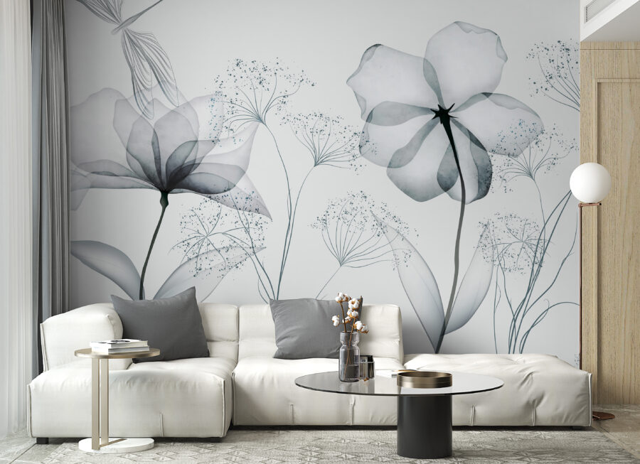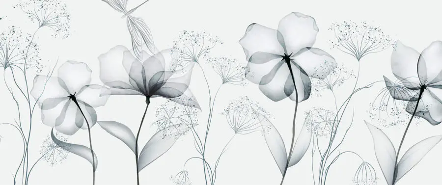2 valoraciones en Fotomurales Delicadas flores en diseño monocromo