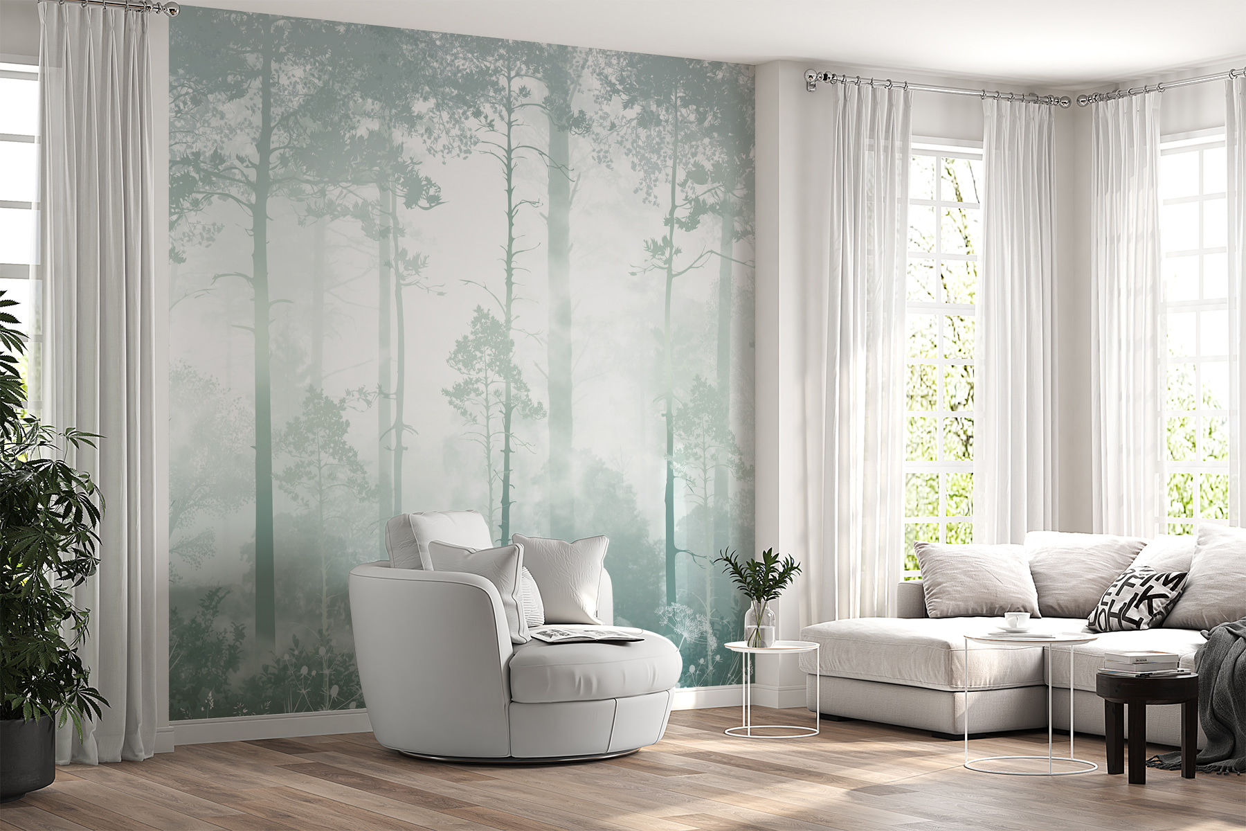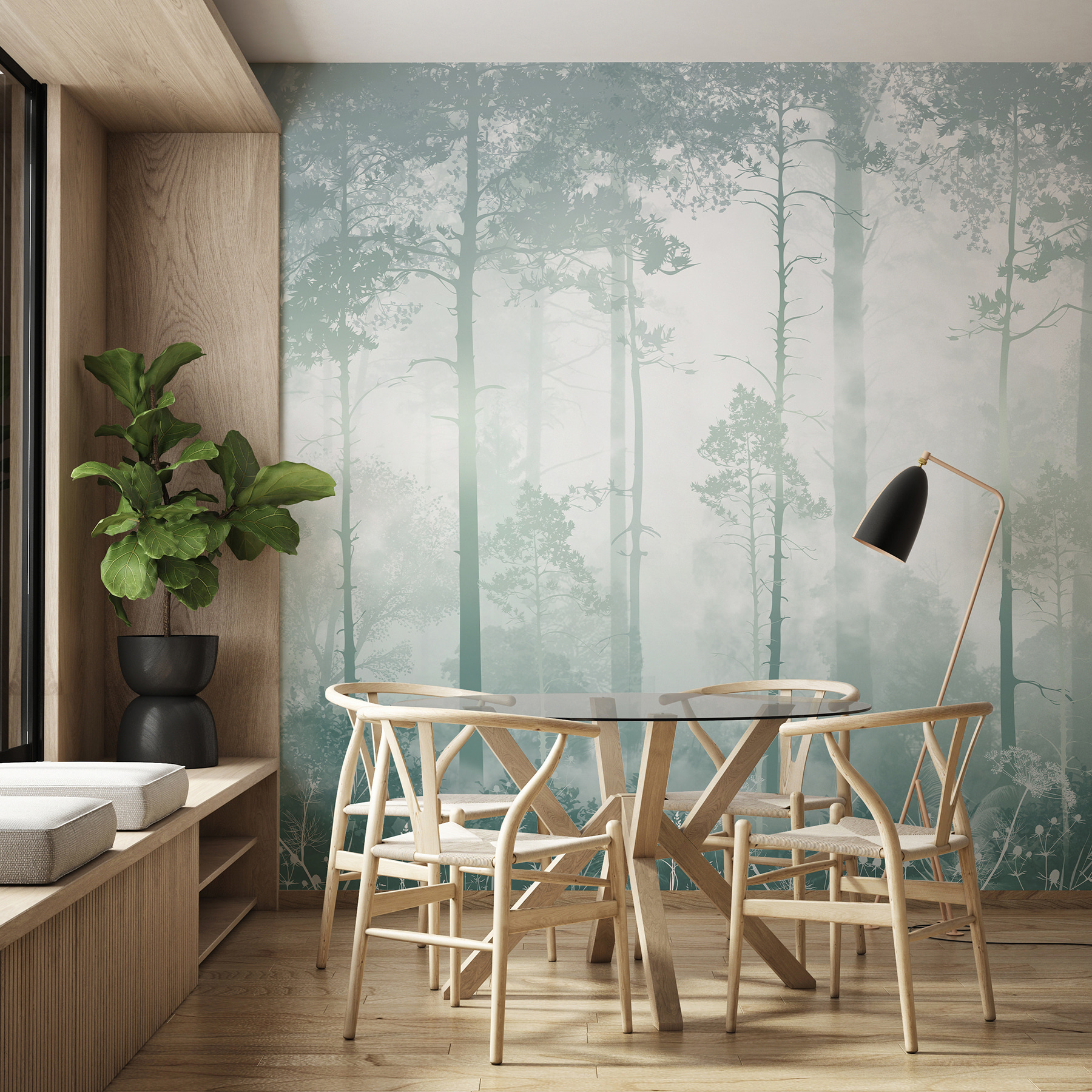 Imagínese caminando por un bosque de ensueño, donde los altos árboles se elevan hacia el cielo, la niebla le envuelve como una manta acogedora y una sensación de calma se instala en su espacio: suena bastante mágico, ¿verdad? Este mural de pared “Bosque brumoso con árboles altos” lleva ese ambiente sereno a su hogar. Es perfecto para esos momentos en los que necesita un poco de evasión, sin ni siquiera salir de su salón u oficina.