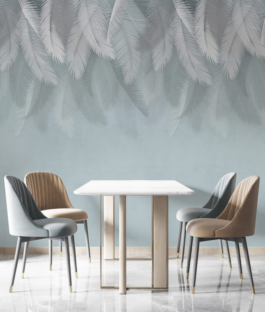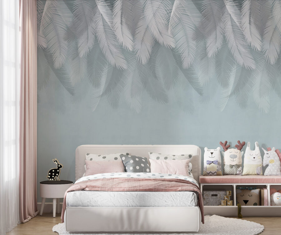 Imagina entrar en una habitación acogedora y ser recibido por suaves plumas blancas que flotan sobre un fondo azul claro. Este mural no es solo una decoración, es un pequeño pedazo de serenidad que envuelve tu espacio en una atmósfera tranquila. Perfecto para un dormitorio o un rincón de lectura, es como una suave brisa en un día cálido. El caprichoso diseño susurra sueños y aventuras, tal vez incluso un paseo en globo aerostático a través de nubes de algodón de azúcar. Es el tipo de arte que te invita a quedarte, respirar profundamente y escapar del ajetreo por un momento. ¡Que cada mirada te haga sonreír!