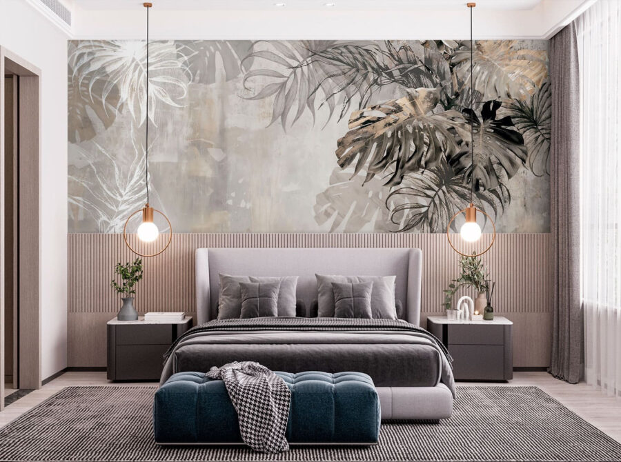 ¿Quiere añadir un toque de sofisticación a su espacio? Conozca el mural de pared “Hojas tropicales abstractas en escala de grises”. Imagine exuberantes hojas artísticamente esbozadas en relajantes tonos grises, que se integran sin esfuerzo en cualquier habitación. Esto no es sólo papel pintado, es una declaración. Perfecto para aquellos que quieren dar un toque tropical sin los colores llamativos habituales.