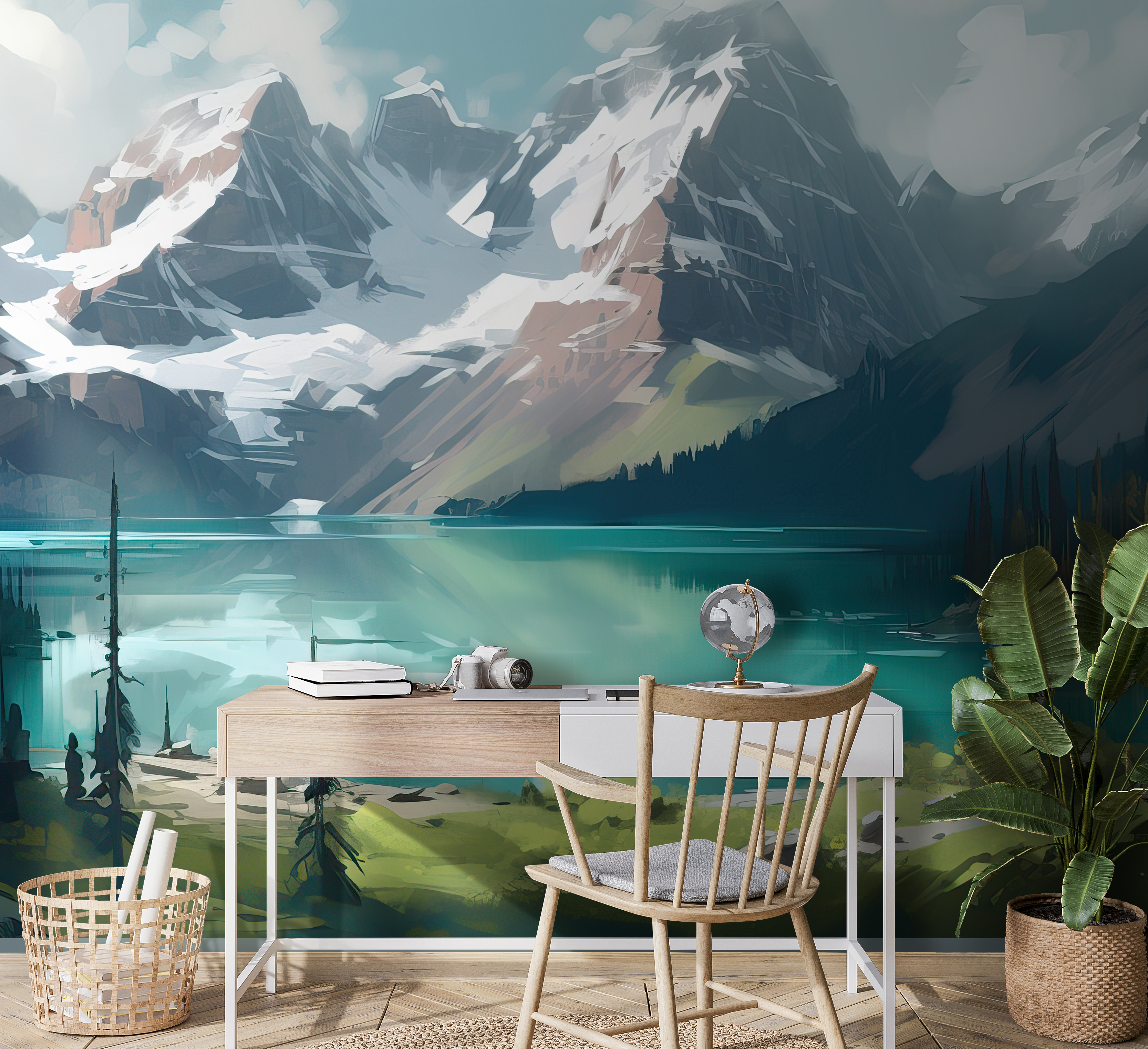 Transforme su espacio con este impresionante mural de pared que muestra un lago sereno rodeado de majestuosas montañas. Invita a un ambiente tranquilo, perfecto para un acogedor rincón de lectura o una animada habitación familiar. Imagine las puestas de sol reflejadas en el agua, casi como una invitación a un viaje de acampada, ¡sin los bichos! Cada mirada a este mural puede transportarle a la naturaleza, haciendo que sueñe despierto con rutas de senderismo y picnics junto al lago. No es sólo decoración; es un portal a momentos de tranquilidad, haciendo que cualquier pared parezca una ventana al aire libre.
