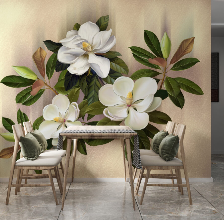 Transforma cualquier estancia en un oasis lleno de vida con el mural «Elegant Blooms with Lush Green Leaves» (Elegantes flores con exuberantes hojas verdes). Imagínate entrar en tu salón y encontrarte con estas impresionantes flores blancas, que prácticamente te piden que las mires dos veces. Es como tener un jardín en casa, ¡pero sin los molestos insectos! Perfecto para un rincón de lectura acogedor o para esa pared en blanco que necesita urgentemente una historia.