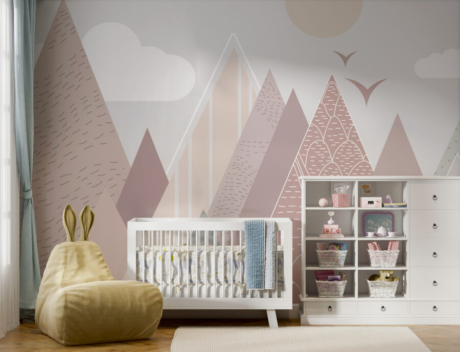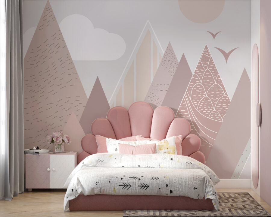 Imagínese entrar en una habitación y sentir al instante una sensación de calma y fantasía, como si estuviera soñando despierto. El mural de pared “Montañas geométricas con pájaros volando” hace exactamente eso. Aporta un ambiente dulce y sereno a cualquier habitación infantil con sus alegres montañas en tonos pastel y sus simpáticos pájaros volando. Ideal para cuartos infantiles y habitaciones de niños, esparce un poco de magia sin ser demasiado llamativo.