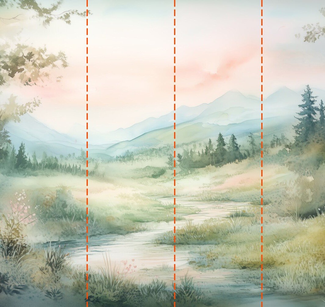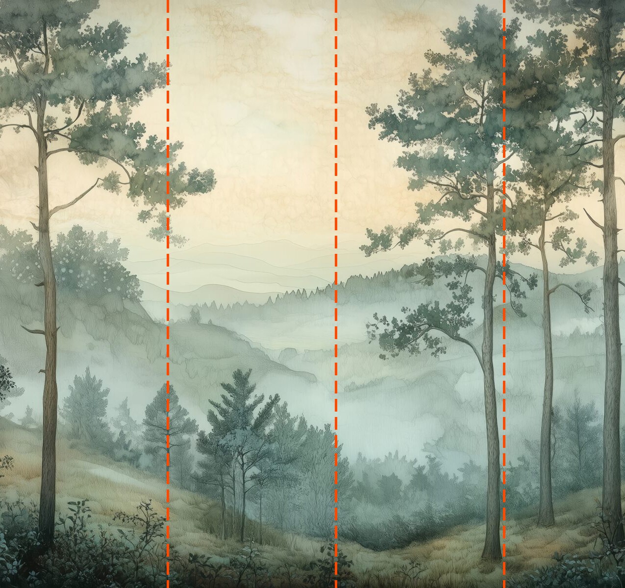 Tu papel pintado se preparará según las dimensiones que nos hayas facilitado durante el proceso de pedido. El lienzo se dividirá en cómodas secciones de hasta 50 cm de ancho cada una.
