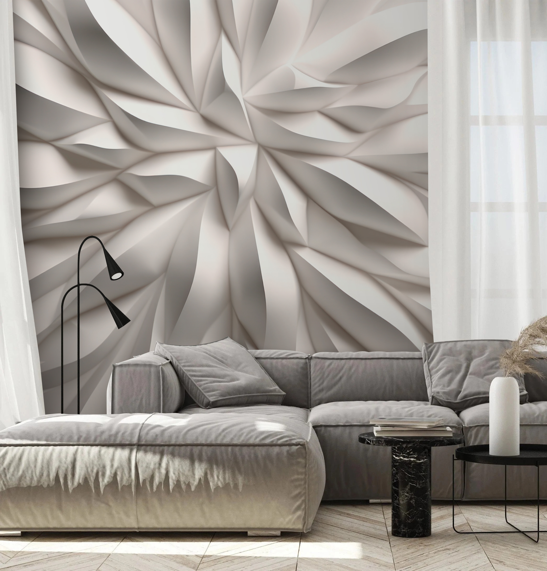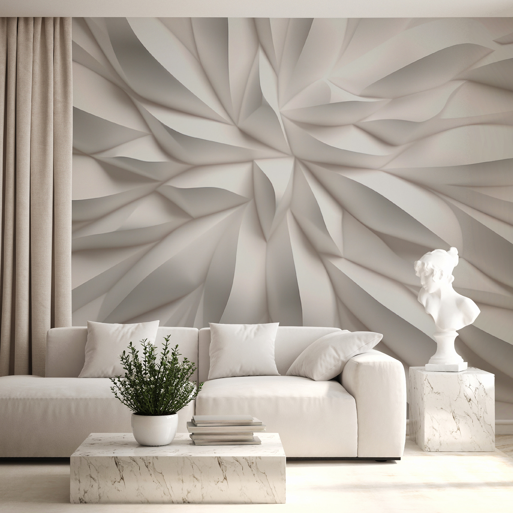 Los sutiles pliegues blancos crean un efecto 3D dinámico que es a la vez moderno y relajante. Sinceramente, casi parece una flor gigante e intrincada. Perfecto para los amantes de la sencillez sofisticada con un toque especial. Colócalo en el salón, en el dormitorio o incluso en tu lugar de trabajo: ¡una mejora instantánea! Además, pertenece a la categoría de murales de flores en 3D, así que ya sabes que tiene un aire natural y orgánico. Sumérjase en una aventura de diseño con este mural único: ¿no le entran ganas de tocarlo?