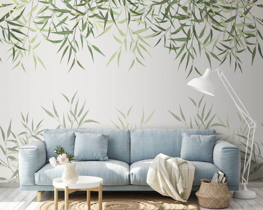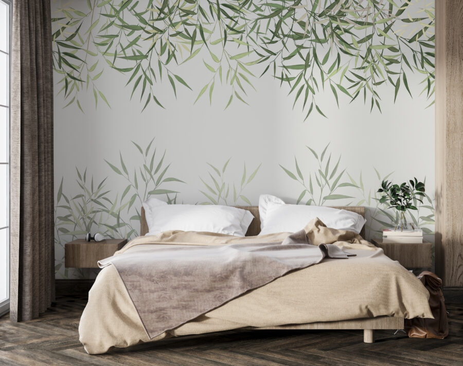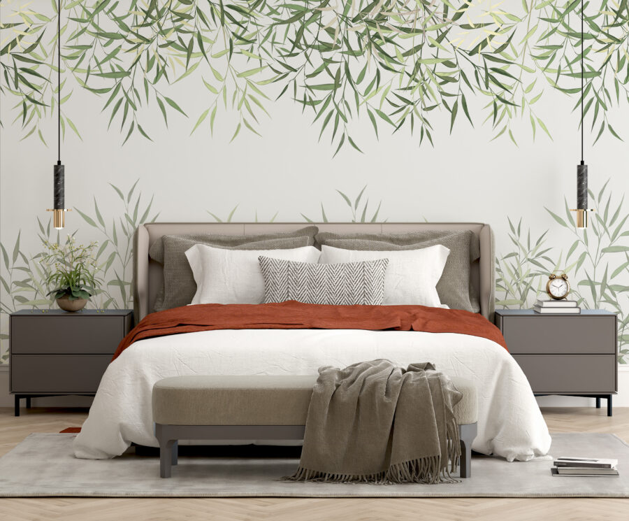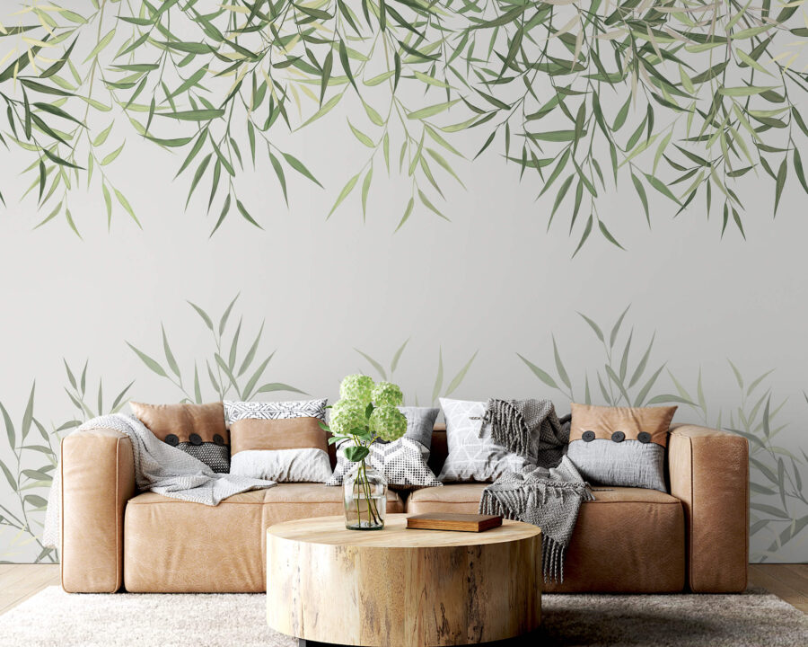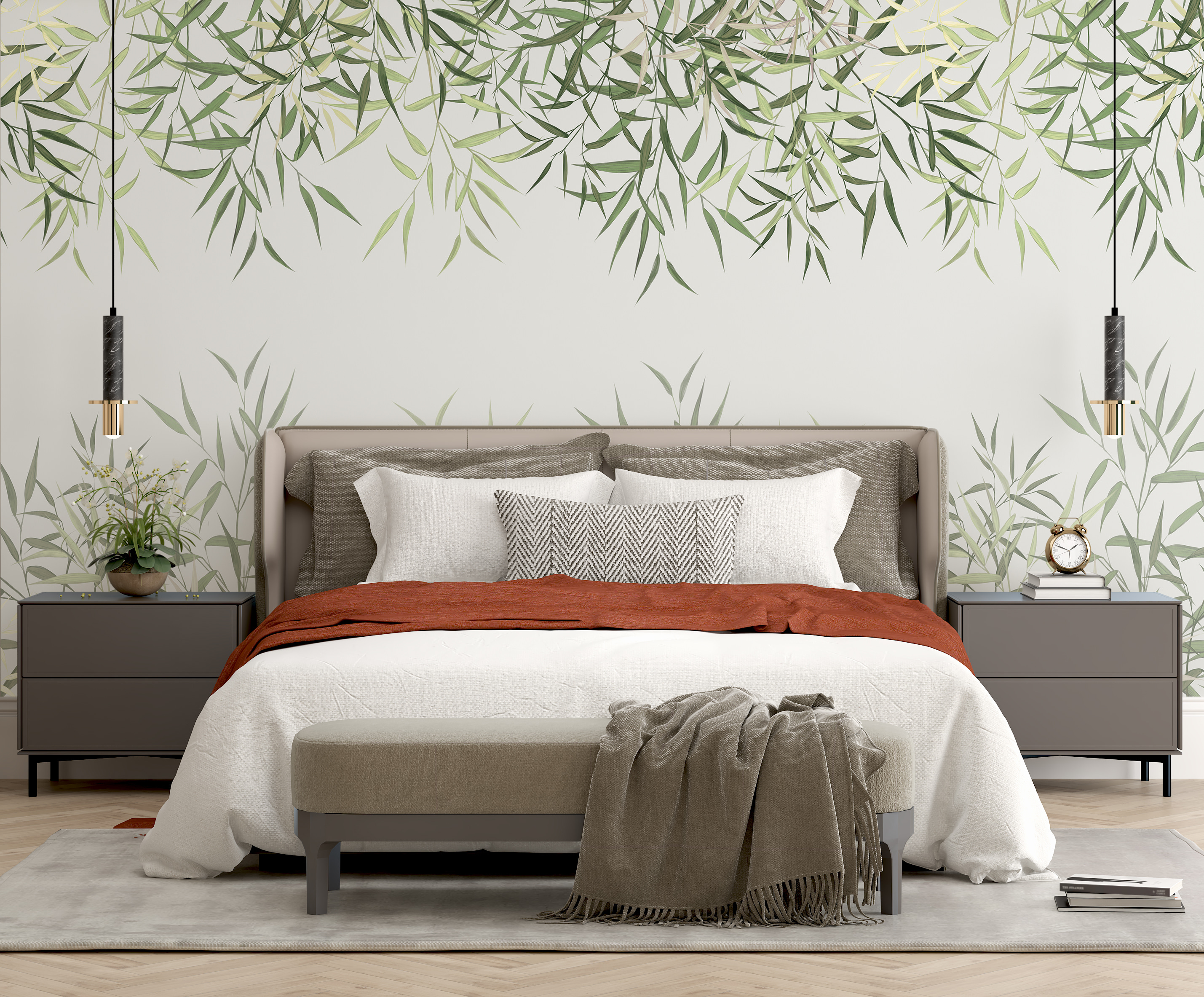 Transforme su espacio con este encantador mural, donde las hojas crean un impresionante borde natural. Imagínese entrar en un oasis de serenidad cada vez que entre en la habitación: esos verdes suaves tienen una manera de calmar incluso las mentes más ocupadas. Ya sea en un acogedor salón o en una alegre cocina, este mural añade un toque de naturaleza sin necesidad de tener un pulgar verde. Y seamos sinceros, ¿a quién no le gusta la idea de decorar sus paredes con un encanto frondoso? Es como invitar a un pequeño bosque a tu casa, sin molestos bichos zumbando. Este diseño, perfecto para los amantes de las vibraciones refrescantes, alegrará las paredes y el espíritu por igual.
