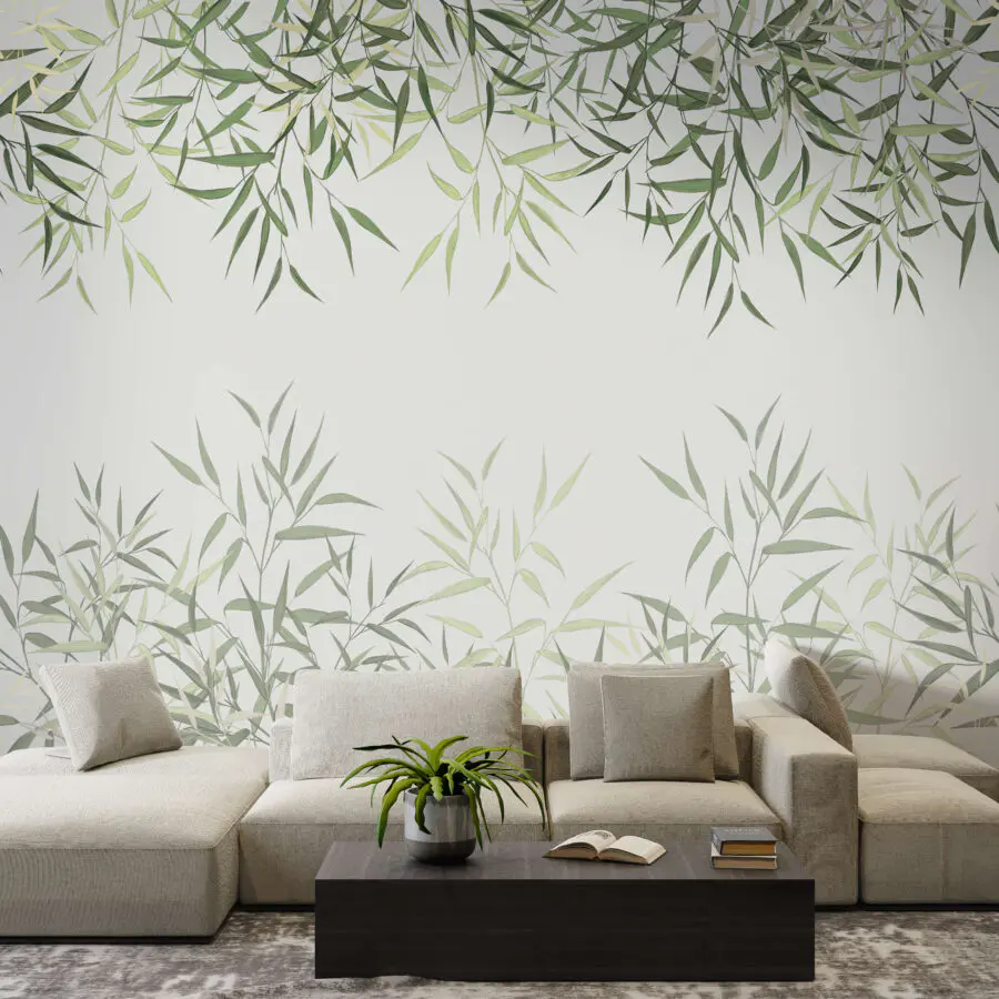 Transforme su espacio con este encantador mural, donde las hojas crean un impresionante borde natural. Imagínese entrar en un oasis de serenidad cada vez que entre en la habitación: esos verdes suaves tienen una manera de calmar incluso las mentes más ocupadas. Ya sea en un acogedor salón o en una alegre cocina, este mural añade un toque de naturaleza sin necesidad de tener un pulgar verde. Y seamos sinceros, ¿a quién no le gusta la idea de decorar sus paredes con un encanto frondoso? Es como invitar a un pequeño bosque a tu casa, sin molestos bichos zumbando. Este diseño, perfecto para los amantes de las vibraciones refrescantes, alegrará las paredes y el espíritu por igual.