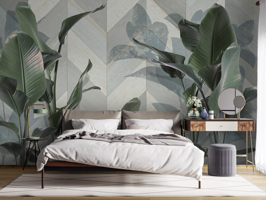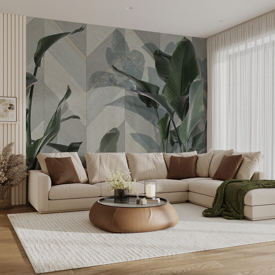 Transforme cualquier habitación con este impresionante mural de exuberantes hojas verdes sobre un elegante fondo estampado. Es como llevar la tranquilidad de un bosque directamente a su espacio vital. Imagine despertarse cada mañana sintiéndose como en una acogedora cabaña rodeado de naturaleza. La frondosidad añade un aire refrescante, perfecto para esos días en los que te apetece estar al aire libre sin tener que preocuparte por los insectos o el tiempo. Además, los sutiles estampados mantienen el interés: nadie sabrá si estás soñando despierto con una escapada tropical o si realmente la estás viviendo. Este mural no es sólo decoración, es toda una experiencia.