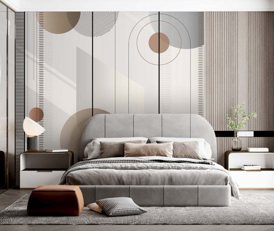 Transforme su espacio con este llamativo mural, con motivos geométricos de tonos cálidos que bailan por las paredes. Imagínese entrar en una habitación acogedora y elegante al mismo tiempo, donde las curvas y las líneas crean un ritmo que hace que todo parezca un poco más vivo. Es como invitar a una obra de arte moderno a tu casa. Perfecto para cualquier pared que se sienta un poco sola, este mural podría inspirar un poco de creatividad o incluso un baile. Aporte calidez y alegría a su decoración: ¡sus paredes se lo agradecerán!