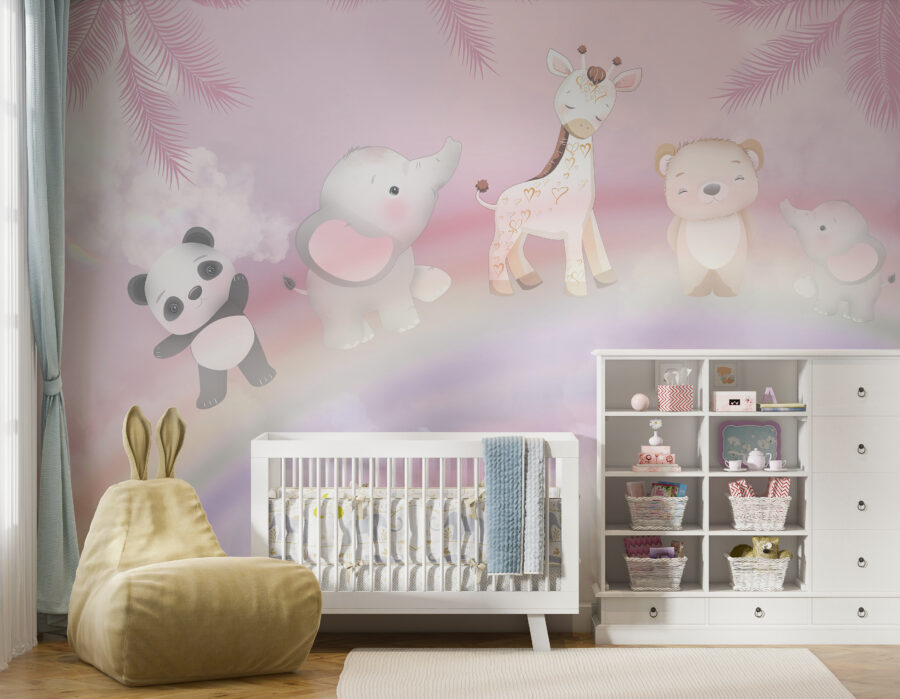 Imagina que entras en la habitación de tu pequeño y te recibe este encantador grupo: un adorable panda, una tierna jirafa, un acogedor oso y sus juguetones amigos. Este “Mural de pared Dibujo animado de un panda” es más que una simple decoración; es como entrar en una ensoñación caprichosa. El suave cielo rosa y las esponjosas nubes crean un relajante telón de fondo, mientras que el arco iris en tonos pastel lo une todo… parece un abrazo, ¿verdad? Ideal para habitaciones infantiles, el mural esparce un poco de alegría y asombro, despertando aventuras imaginativas cada día. Perfecto para alimentar la creatividad de tu hijo y convertir su espacio en un refugio mágico. Encantador, ¿verdad?
