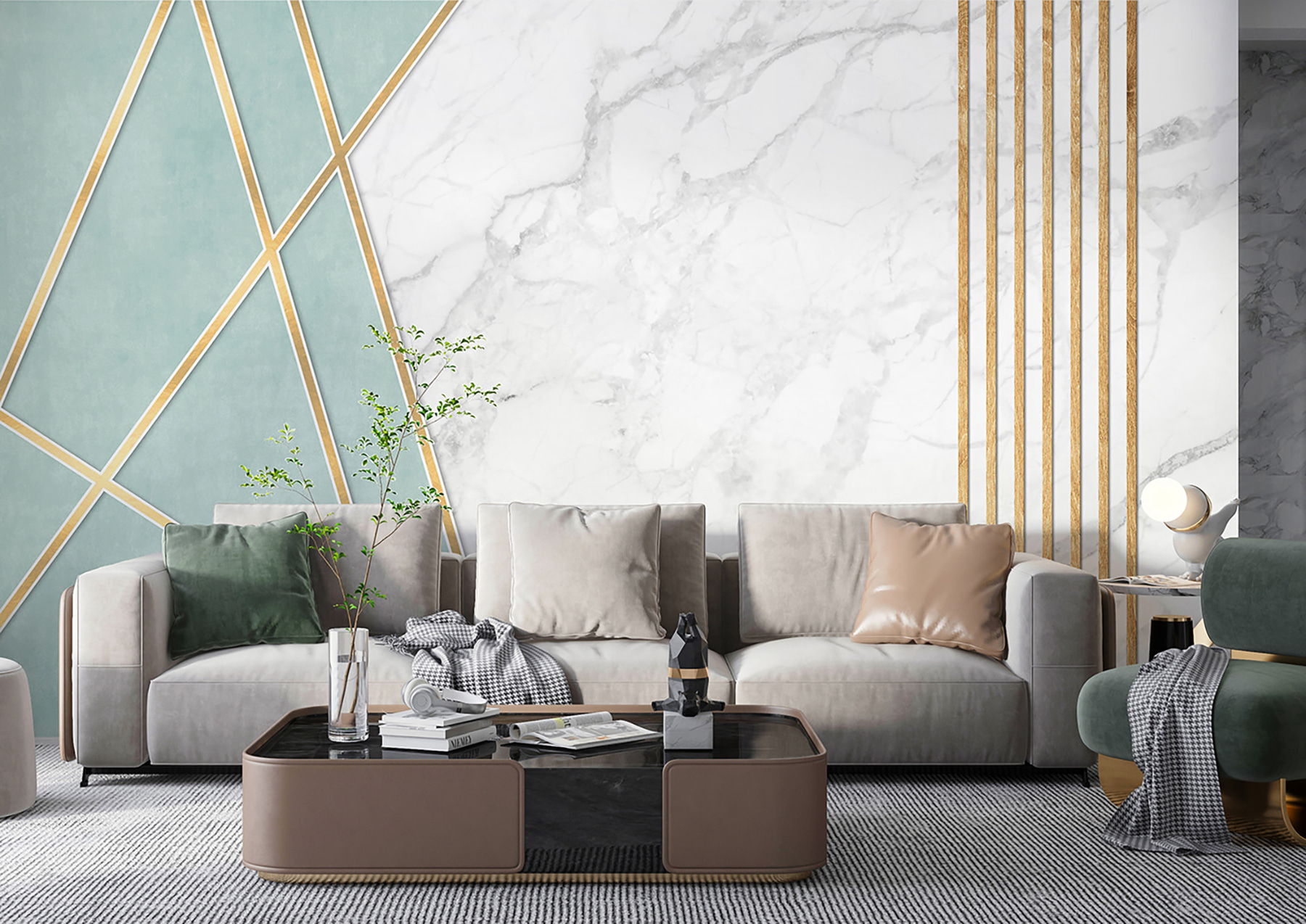 Transforme su espacio con estos murales de pared de líneas elegantes sobre un fondo jaspeado. Imagínese entrar en una habitación donde la geometría se combina con el arte; es como tener una pieza de arte moderno que susurra sofisticación sin gritar para llamar la atención. Los tonos fríos y los patrones suaves pueden crear un ambiente relajante, perfecto para soñar despierto o relajarse después de una larga semana. Imagínese un rincón acogedor con una silla cómoda, una bebida caliente en la mano y este mural creando ambiente. Es el tipo de decoración que hace una declaración de intenciones pero sigue siendo accesible, como una charla amistosa tomando un café. Perfecto tanto para minimalistas como para amantes del diseño. ¿Por qué no dejar que sean las paredes las que hablen?