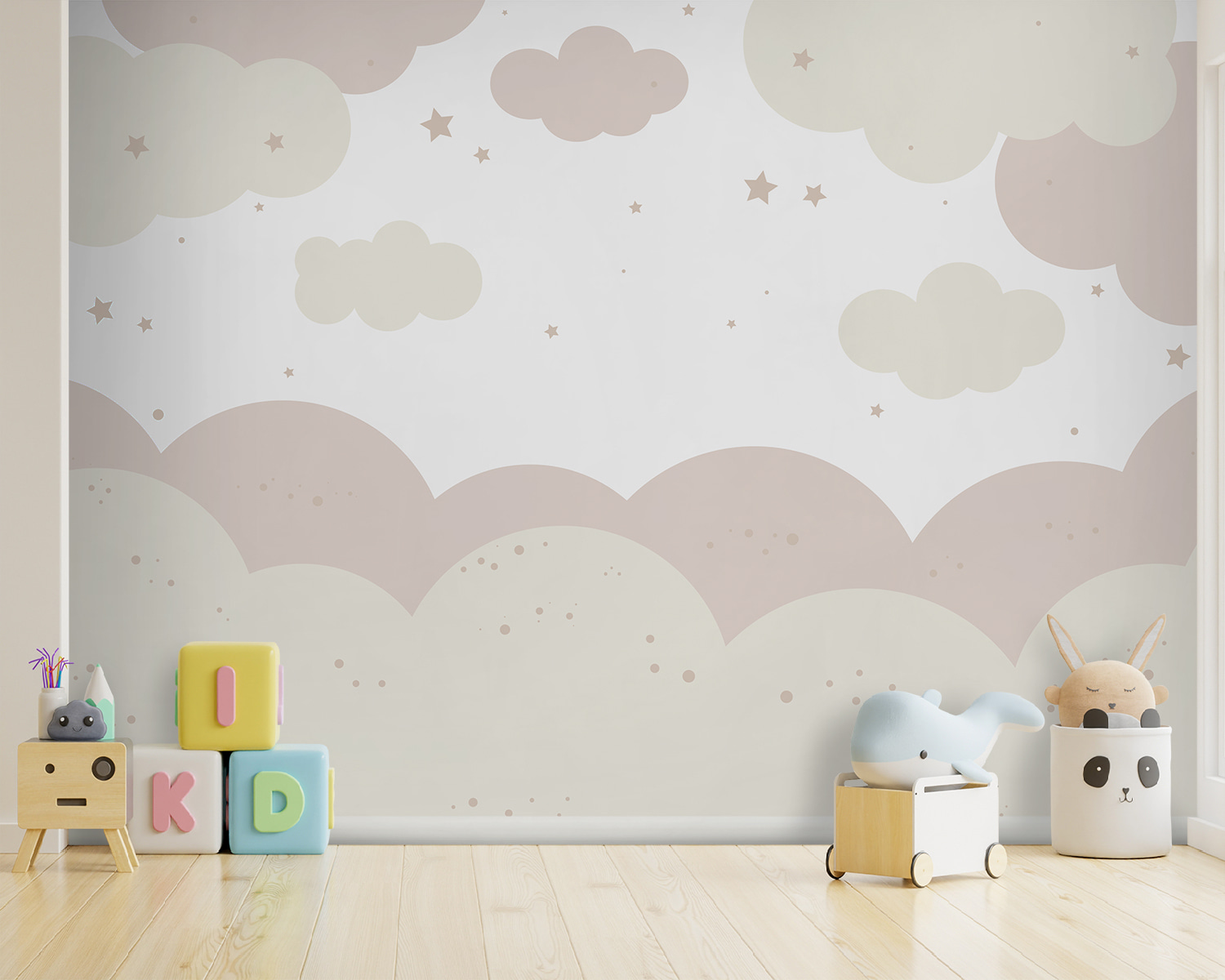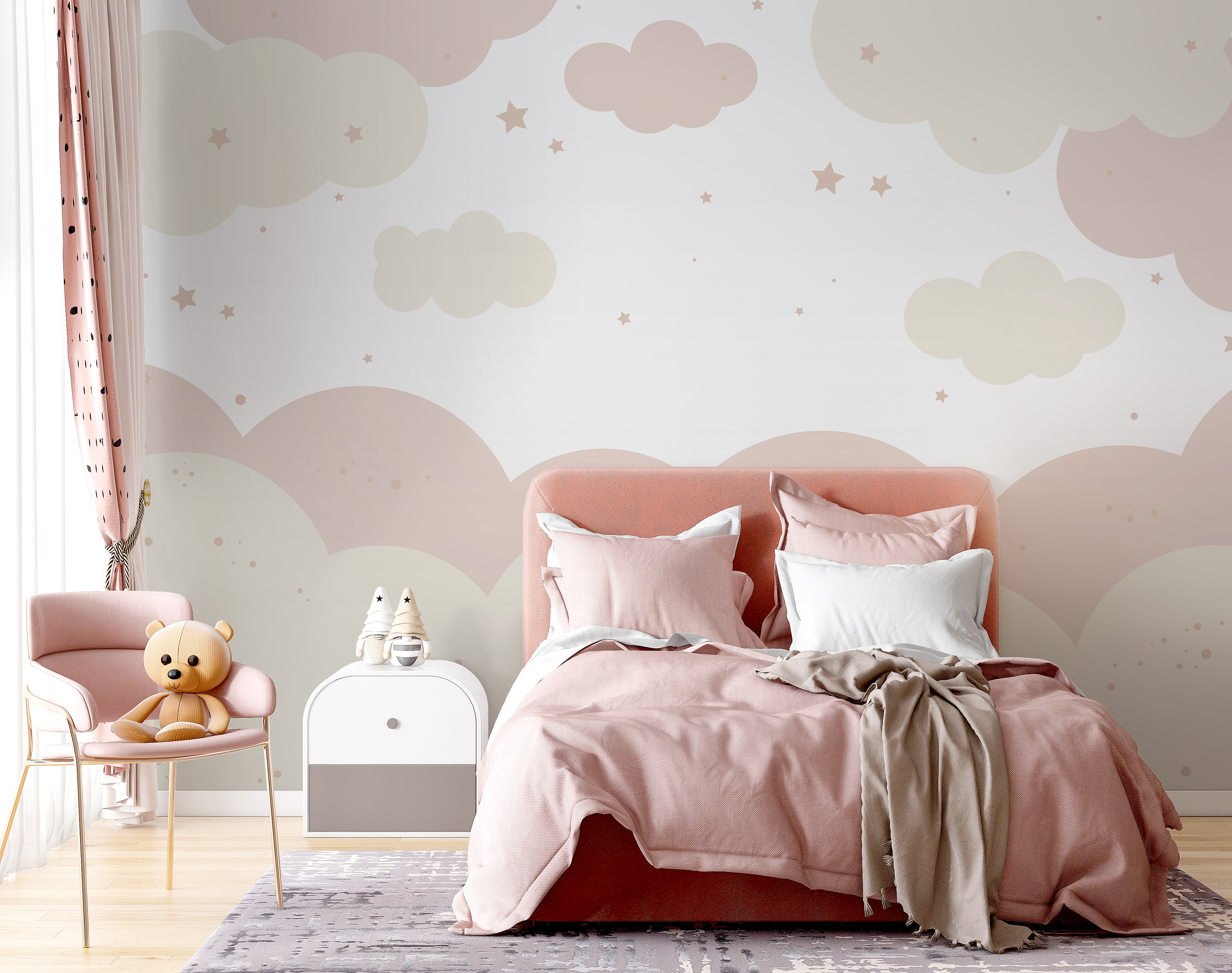 Imagine entrar en una habitación y sentir la serenidad de flotar sobre las nubes. Eso es lo que consigue este mural de nubes blancas y rosas. Es perfecto para la habitación de un niño, ya sea para una habitación infantil de ensueño o para el refugio de su pequeña princesa. Los tonos pastel son relajantes, perfectos para los cuentos tranquilos a la hora de dormir o las imaginativas ensoñaciones.