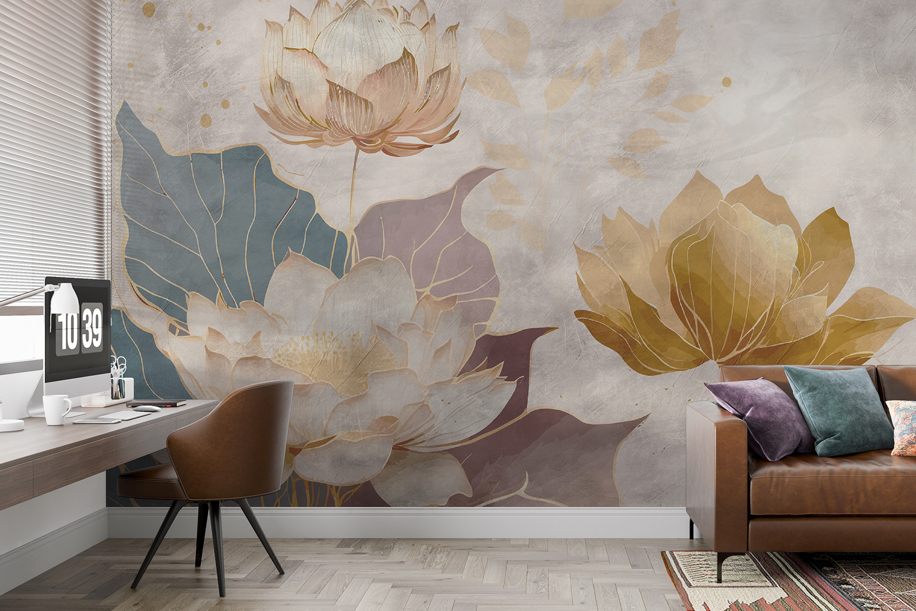 Transforme su espacio con el cautivador encanto de este mural de pared, con elegantes flores de loto en tonos suaves. Imagínese entrar en una habitación donde estas preciosas flores danzan por la pared, aportando una sensación de calma y serenidad. Es como tener un hermoso jardín en el salón, sin suciedad ni molestos insectos. Los colores sutiles crean un telón de fondo relajante, perfecto para acurrucarse con un buen libro o disfrutar de una tranquila taza de té. Puede que incluso sueñe despierto mientras disfruta de su belleza. Este mural no es sólo decoración; es una invitación a relajarse. Ya sea en un rincón acogedor o en un animado lugar de fiesta, esta obra de arte eleva el ambiente sin esfuerzo. Así que, ¿por qué no dejar que estas elegantes flores sean el centro de atención? Tus paredes se merecen un poco de amor, ¿verdad?